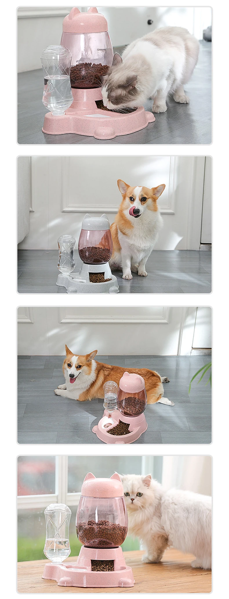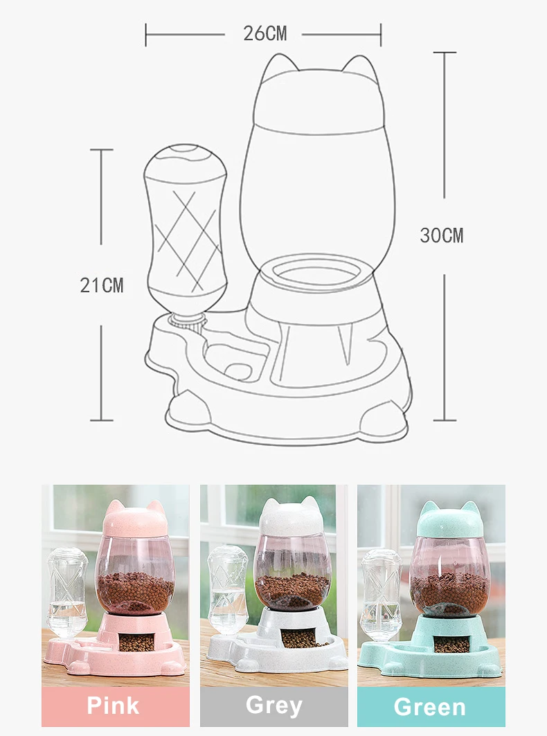 HOOPET-cuenco alimentador automático para gatos, 2,2 L, para comida de perros y gatos, con botella de agua, cuencos para gatitos, contenedor de alimentación lenta, suministros para mascotas