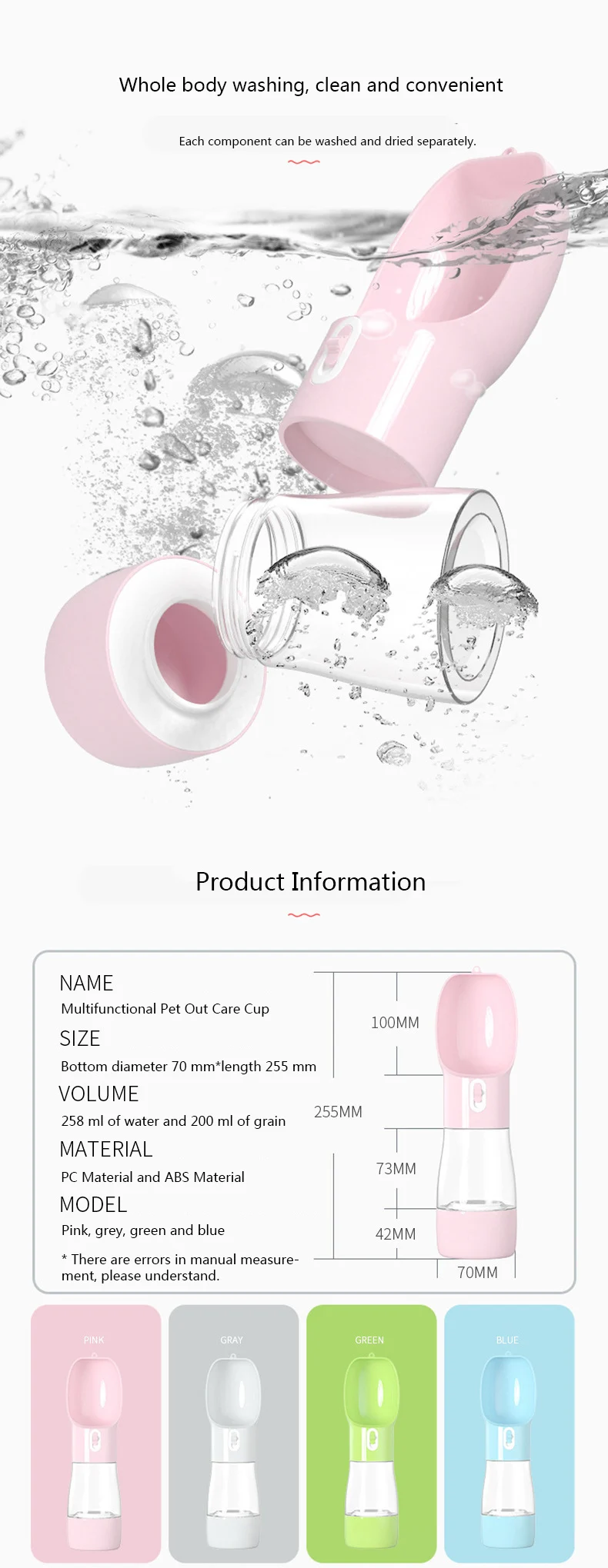 Botella de agua portátil para perros, multifunción, fuente de agua con tazón y contenedor de alimentos para perros y gatos, productos para mascotas【Nombre del producto】: Gota de agua potable