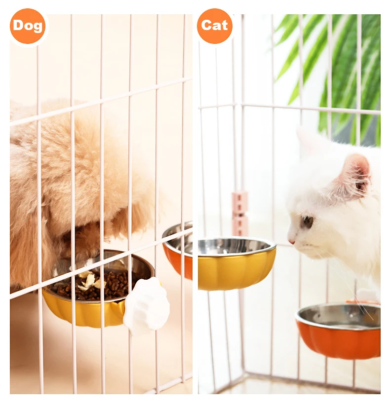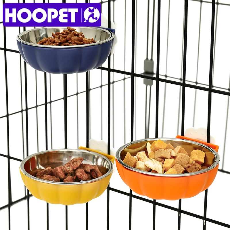 HOOPET-cuenco colgante de acero inoxidable para gatos, recipiente para comida, cuenco para agua, jaula para gatos, cuenco para arroz, jaula para perros, cuenco antigiro para perros