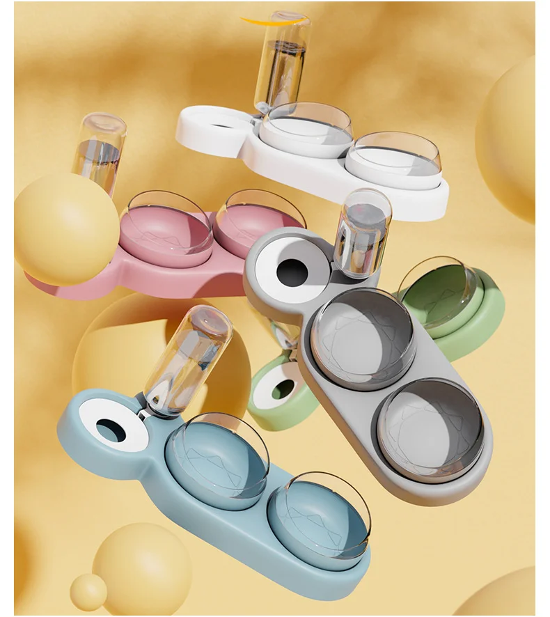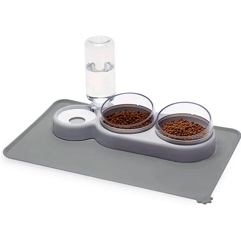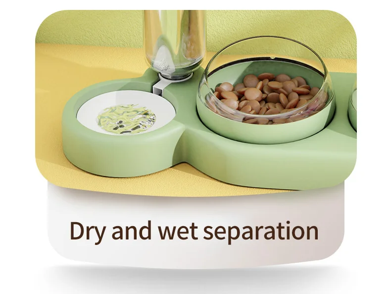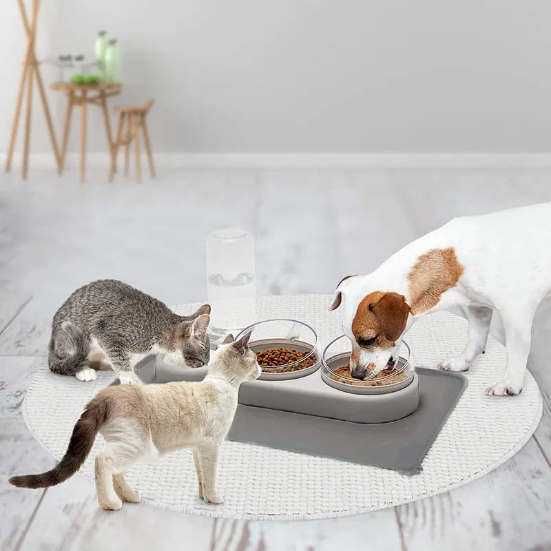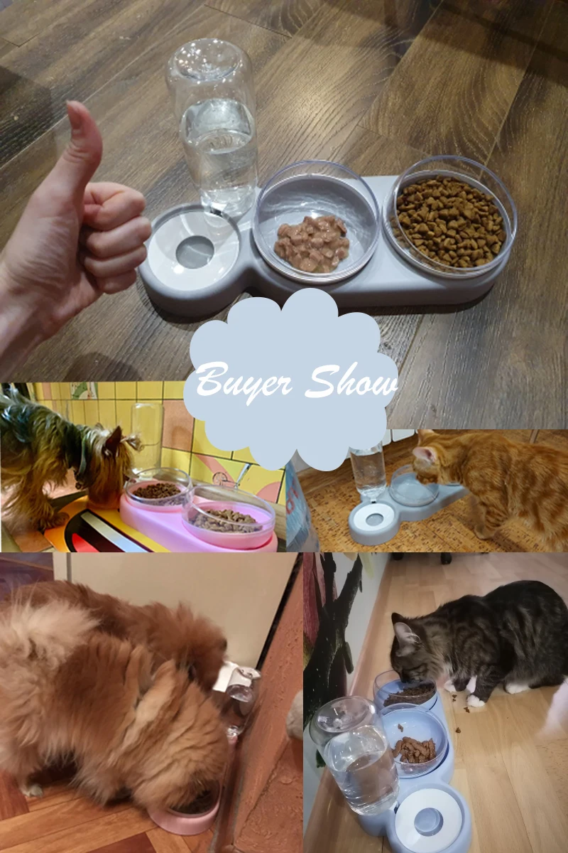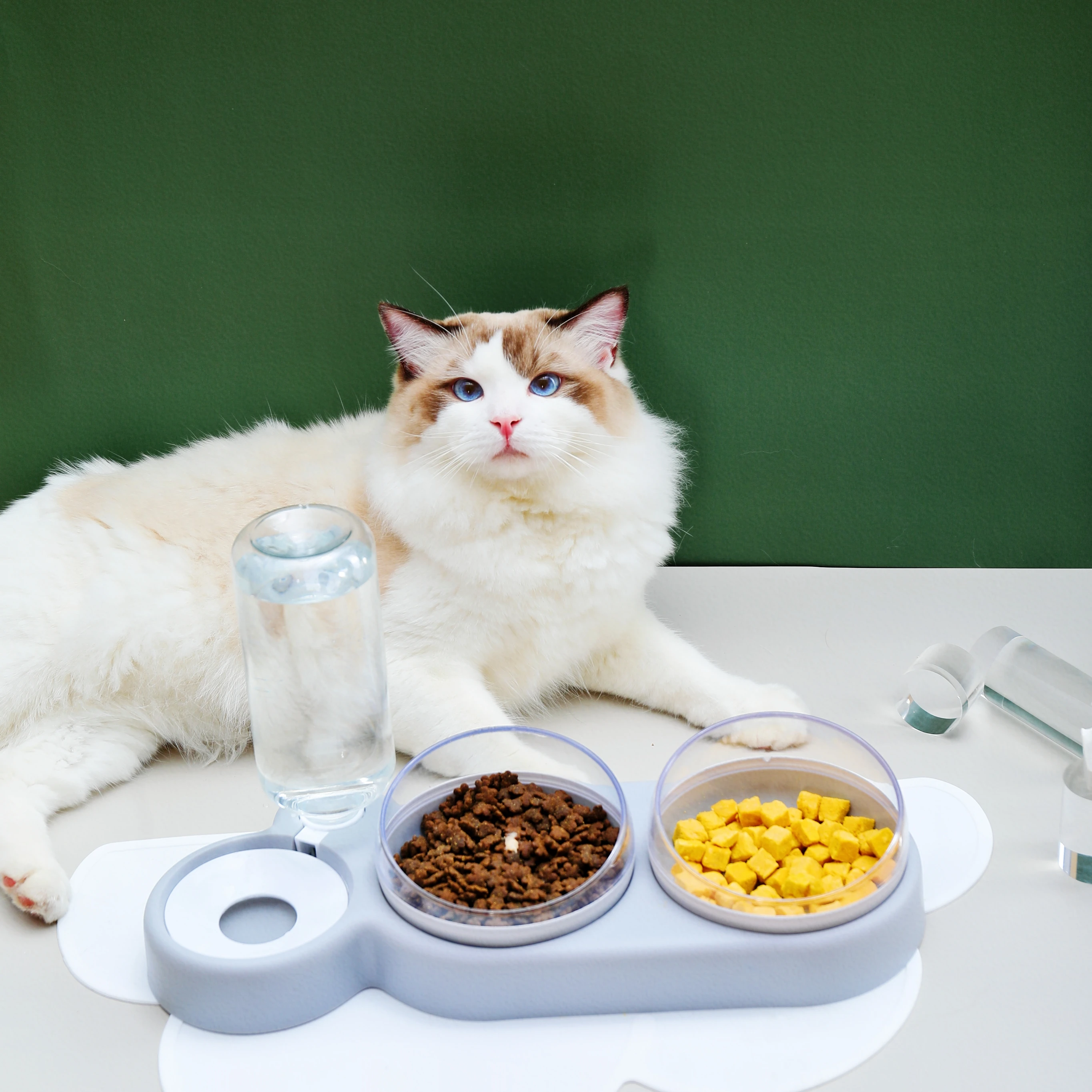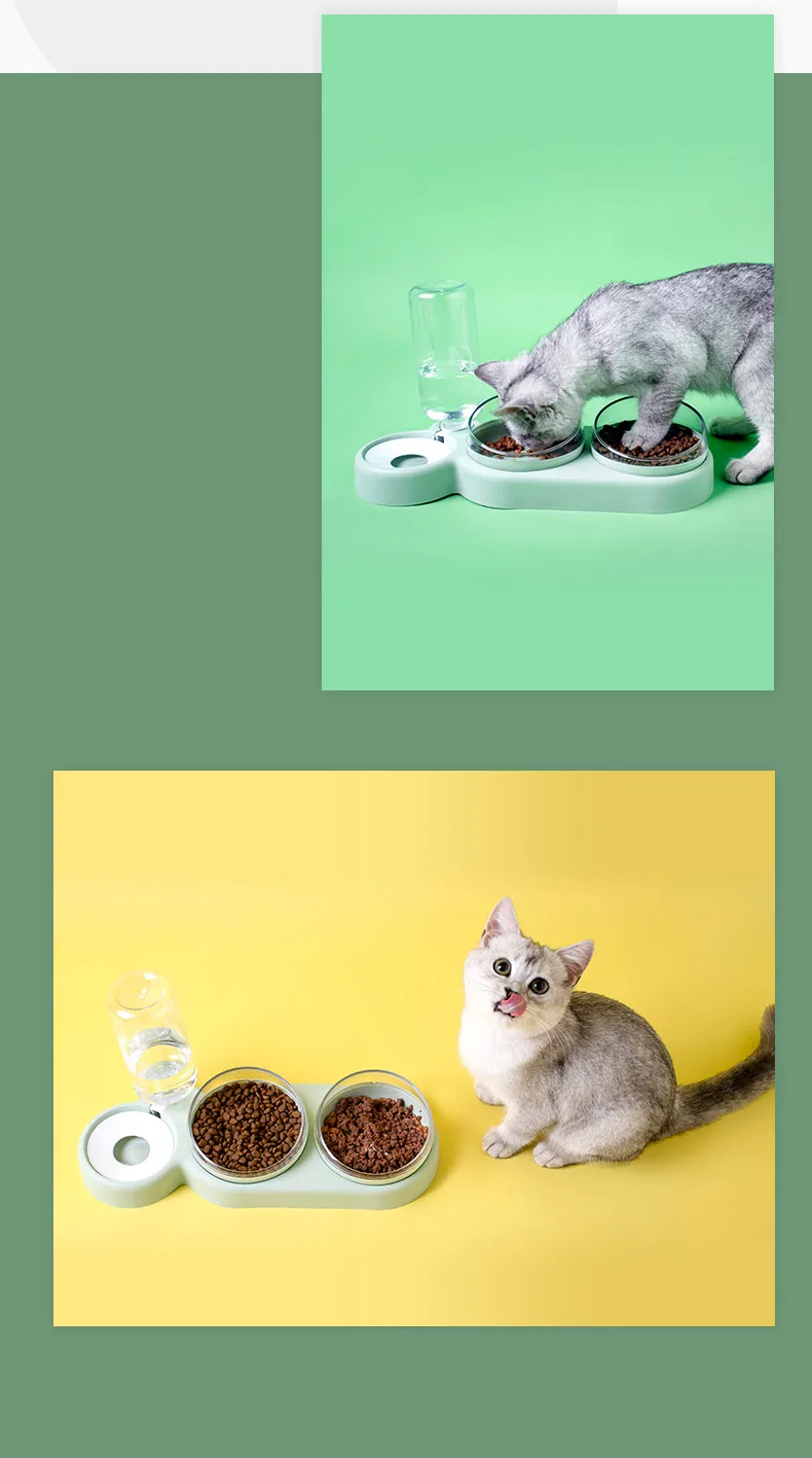 ▲【 Juego de cuencos de agua y comida para gatos 3 en 1 】: los dos cuencos para gatos están diseñados para una salida seca y húmeda, y permiten que varias Mascotas coman al mismo tiempo