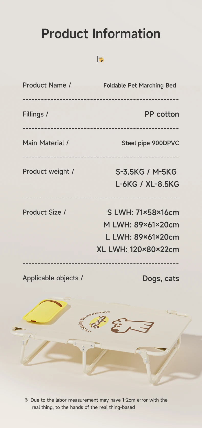 HOOPET Cuna elevada para perros, cama resistente para mascotas para perros medianos y grandes, tela Oxford impermeable y resistente a las manchas, plegable portátil