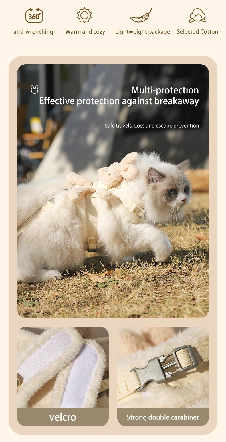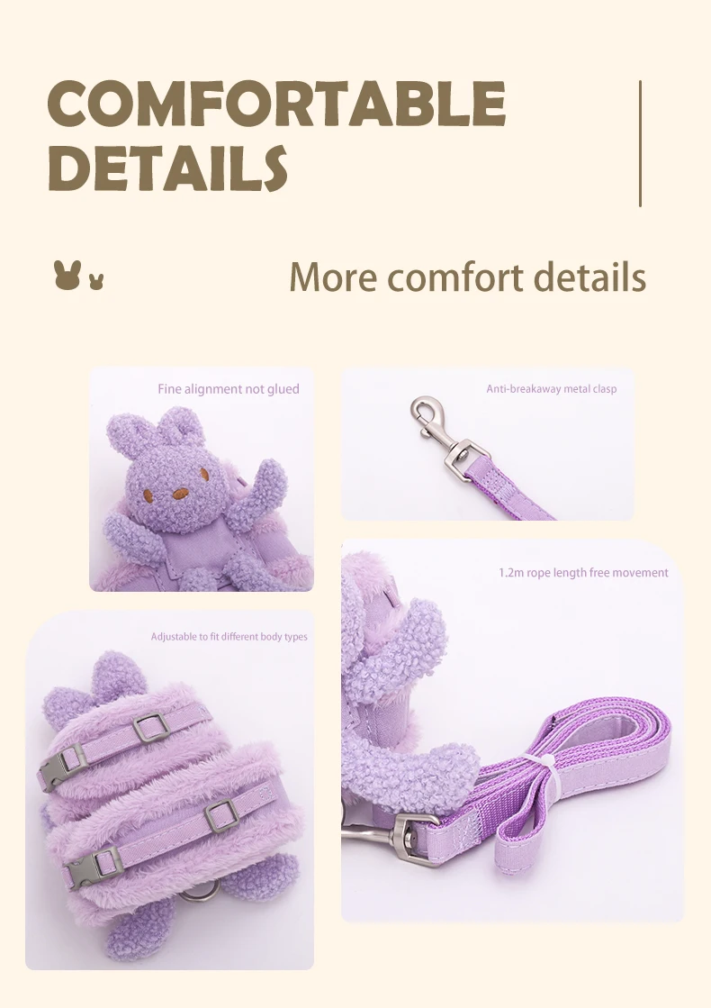 HOOPET Juego de transporte ajustable para mascotas, correa para perros, al aire libre, cálido, dibujos animados, conejo, invierno, al aire libre