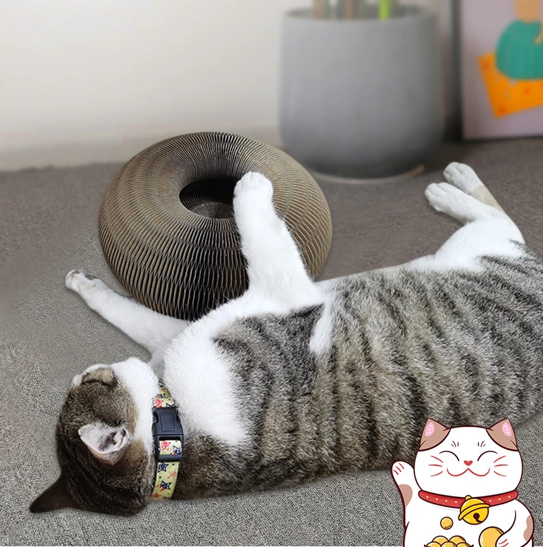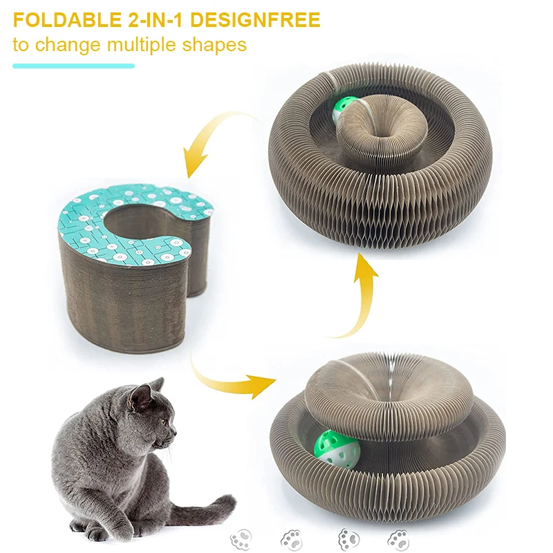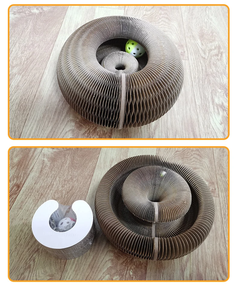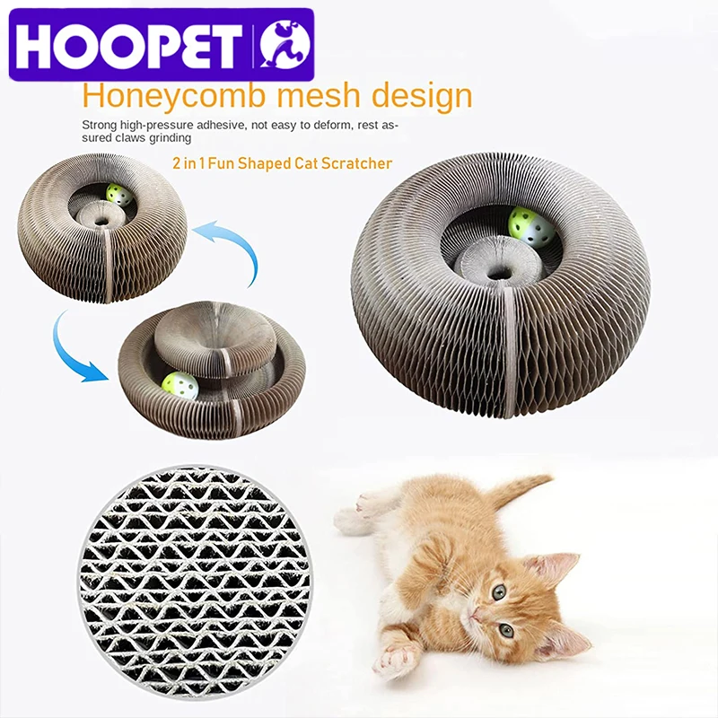 【Nombre del producto】Juguete para gatos HOOPET con campana, órgano mágico, tablero rascador para gatos, tablero rascador plegable para gatos, gatito, forma redonda, corrugado plegable