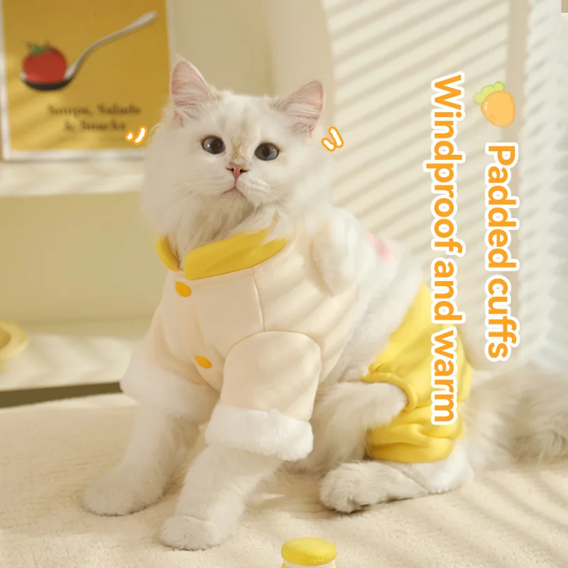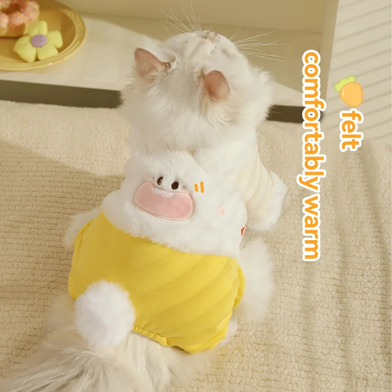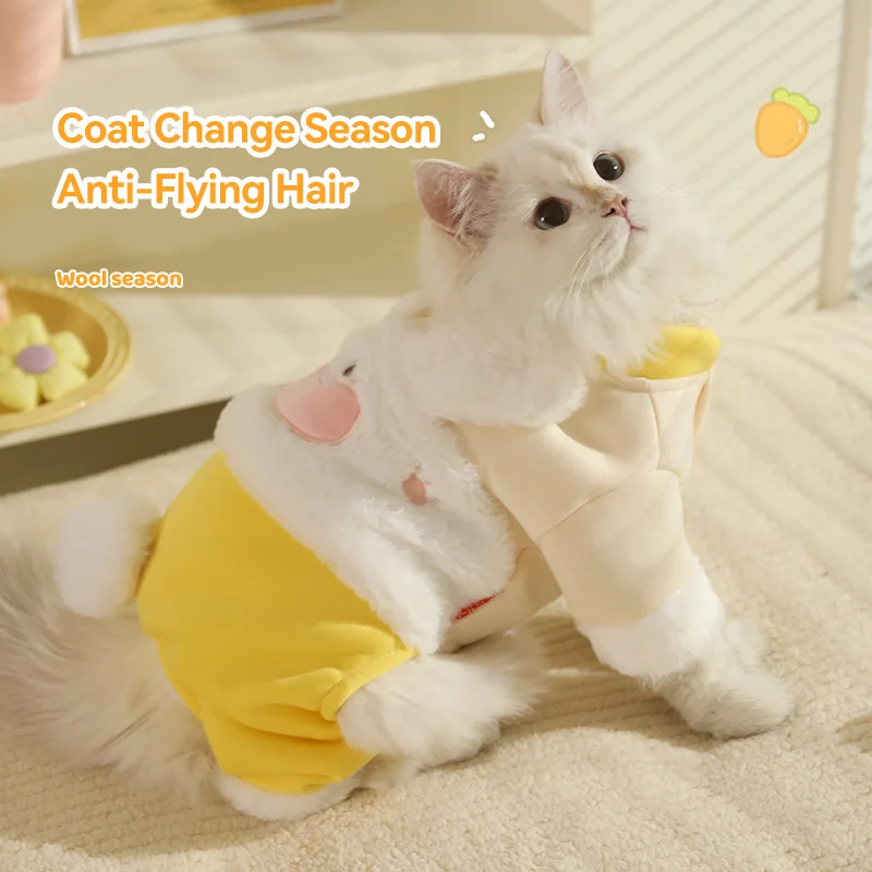 HOOPET-ropa para gatos de otoño e invierno, muñeco de trapo para gatitos, conejo de invierno, pelo cálido anticaída, bonito traje de cuatro patas para mascotas, invierno