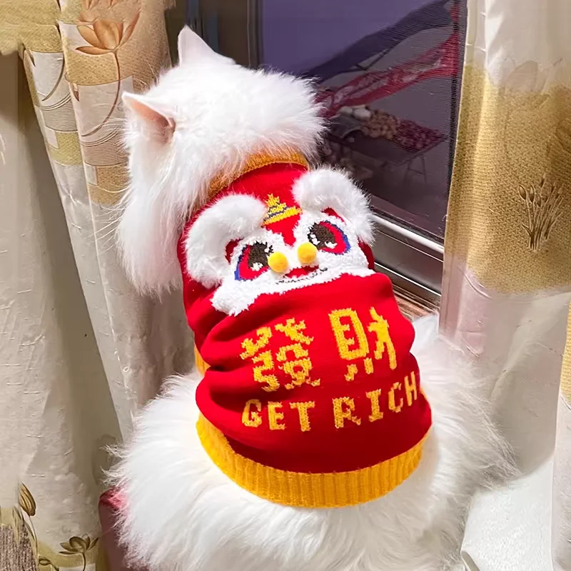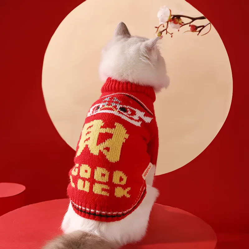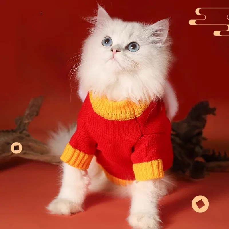 HOOPET Ropa para gatos Suéter de Año Nuevo Otoño e Invierno Gato Lindo Ragdoll Inglés Corto Gatito Invierno Cálido Gatito Año Nuevo Invierno