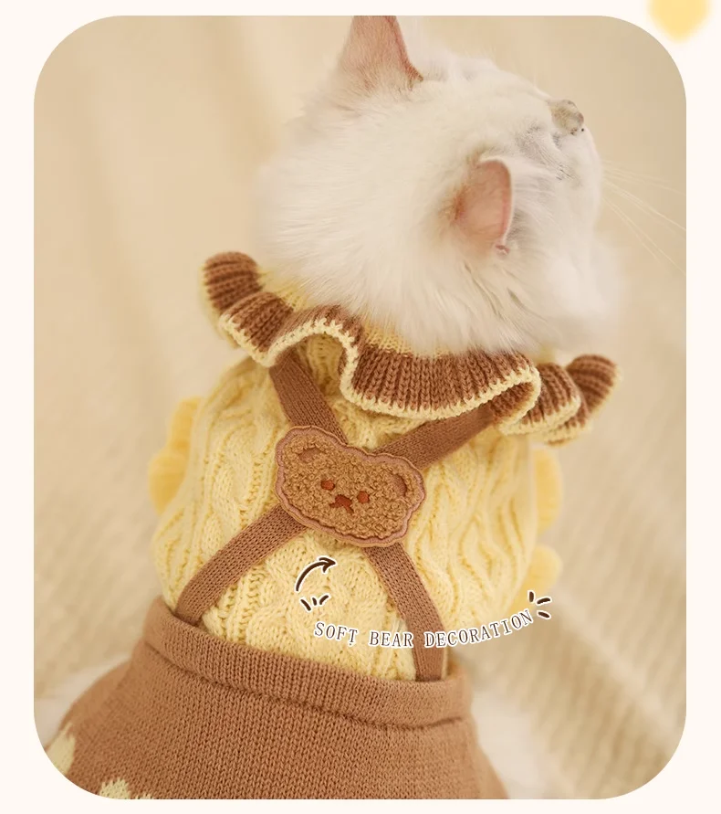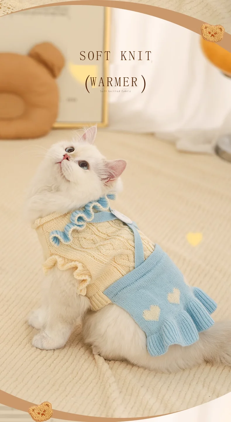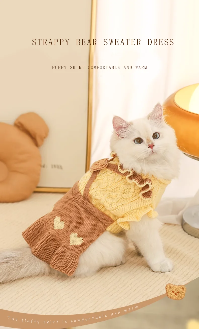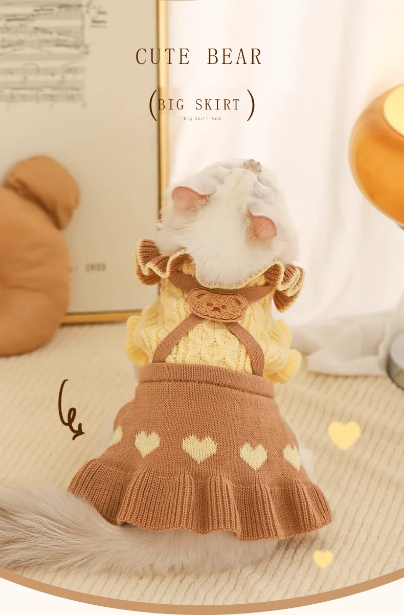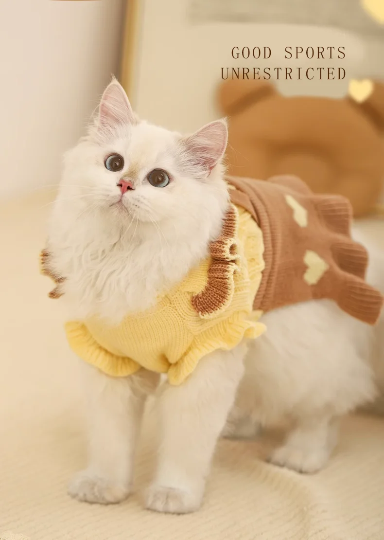 HOOPET Ropa para gatos Vestido lindo Invierno Gatito Ragdoll Cálido Invierno Mascota Dulce Suéter Ropa para perros Estilo de otoño e invierno