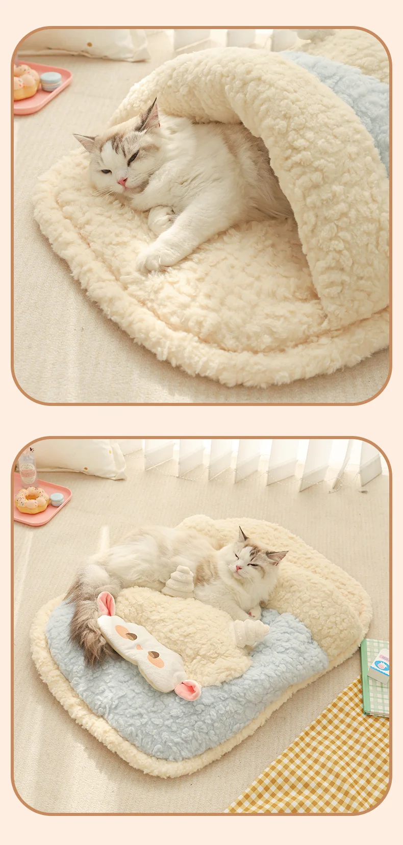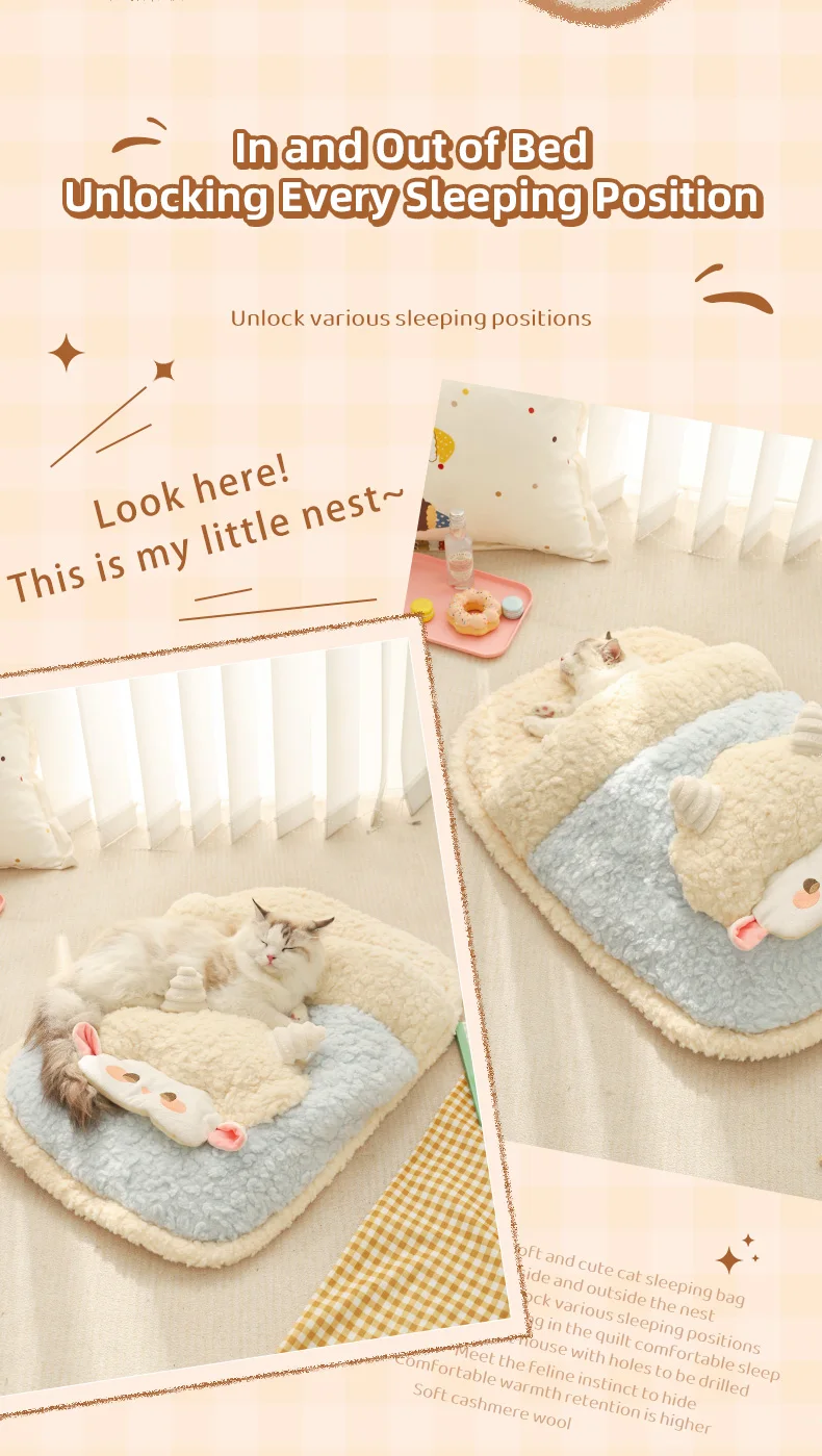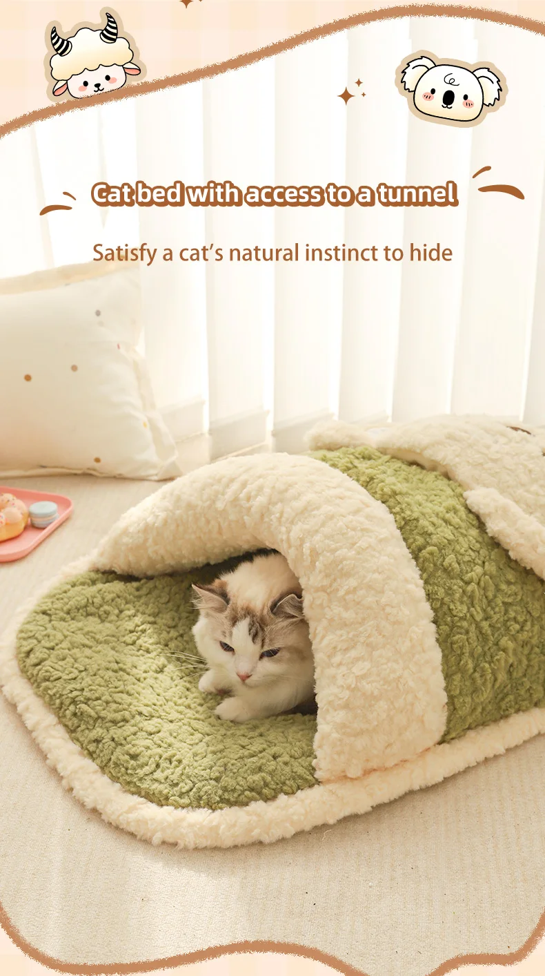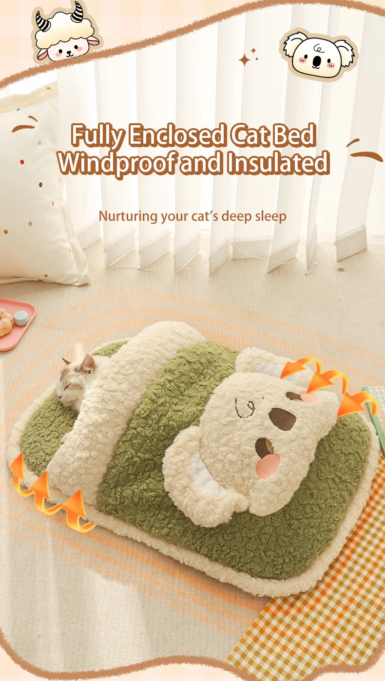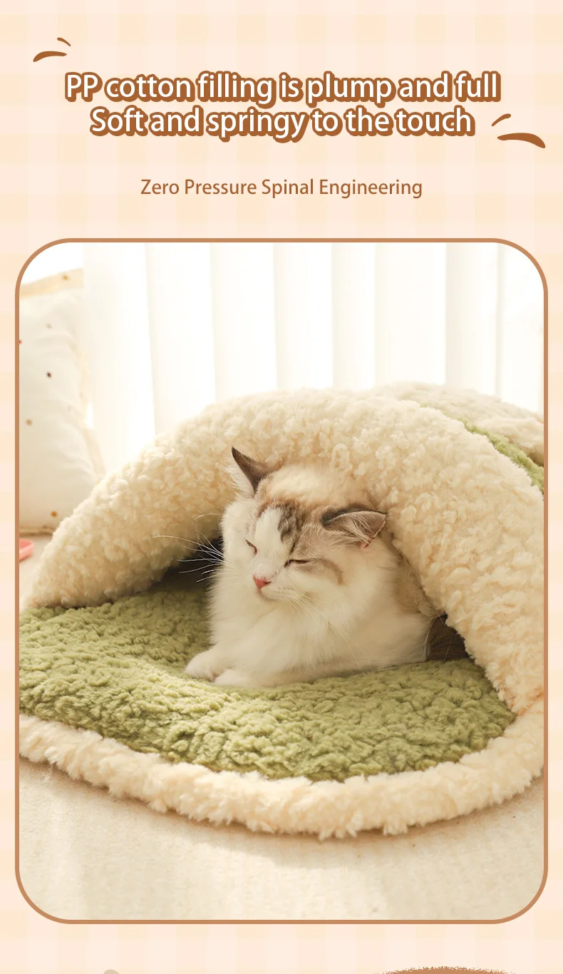 HOOPET Saco de dormir calmante para gatos para invierno, cama semicerrada de felpa súper suave con sensación segura para un acolchado de gatitos cálidos