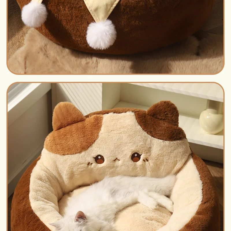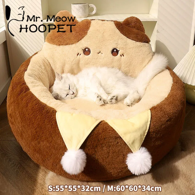 HOOPET-sofá para gatos, cama para perros, colchón redondo para gatos, cojín cálido para dormir profundo, casa suave para gatos, nido para perros, accesorios para mascotas