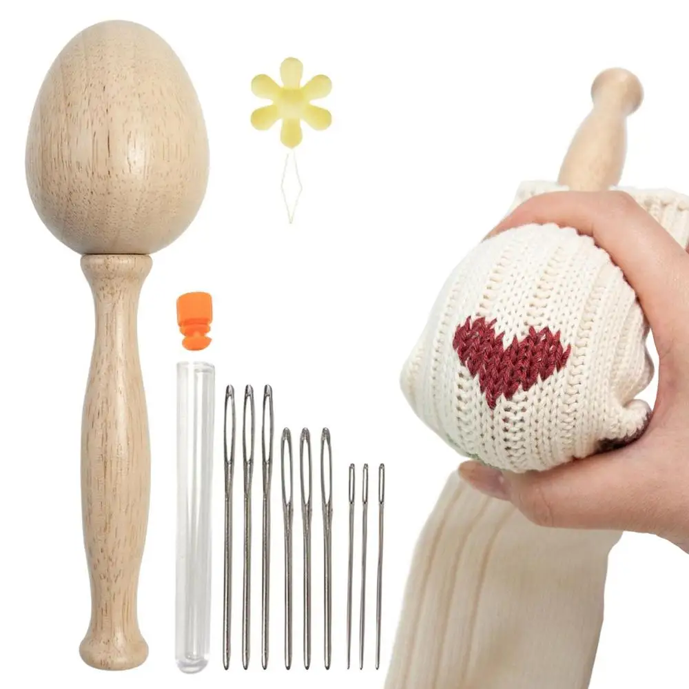 El exclusivo juego de huevos para zurcir en forma de huevo para calcetines es perfecto para parchear agujeros no deseados en la ropa, y el mango curvo es fácil de agarrar, lo que lo convierte en la herramienta de zurcir más popular