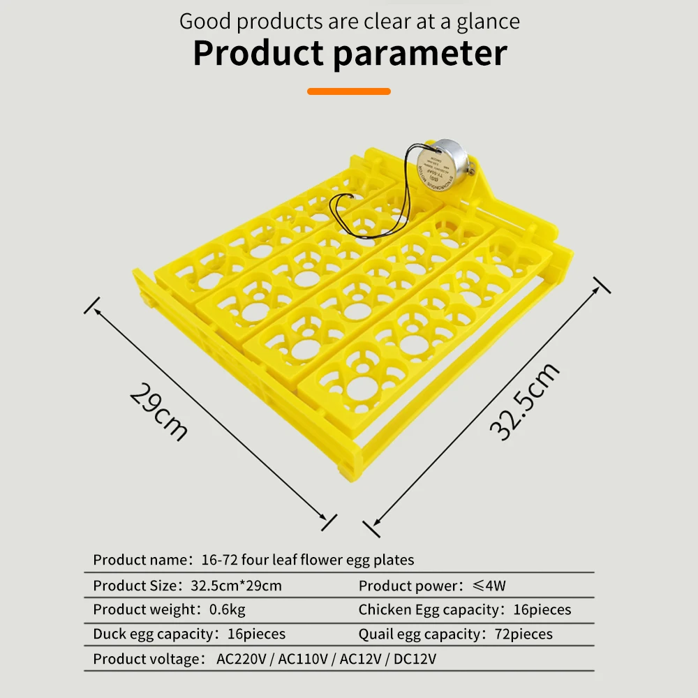 4.Bandeja para huevos hueca y transpirable: logra amplitud y espacio razonable para la circulación del aire, proporcionando un buen ambiente para la eclosión.