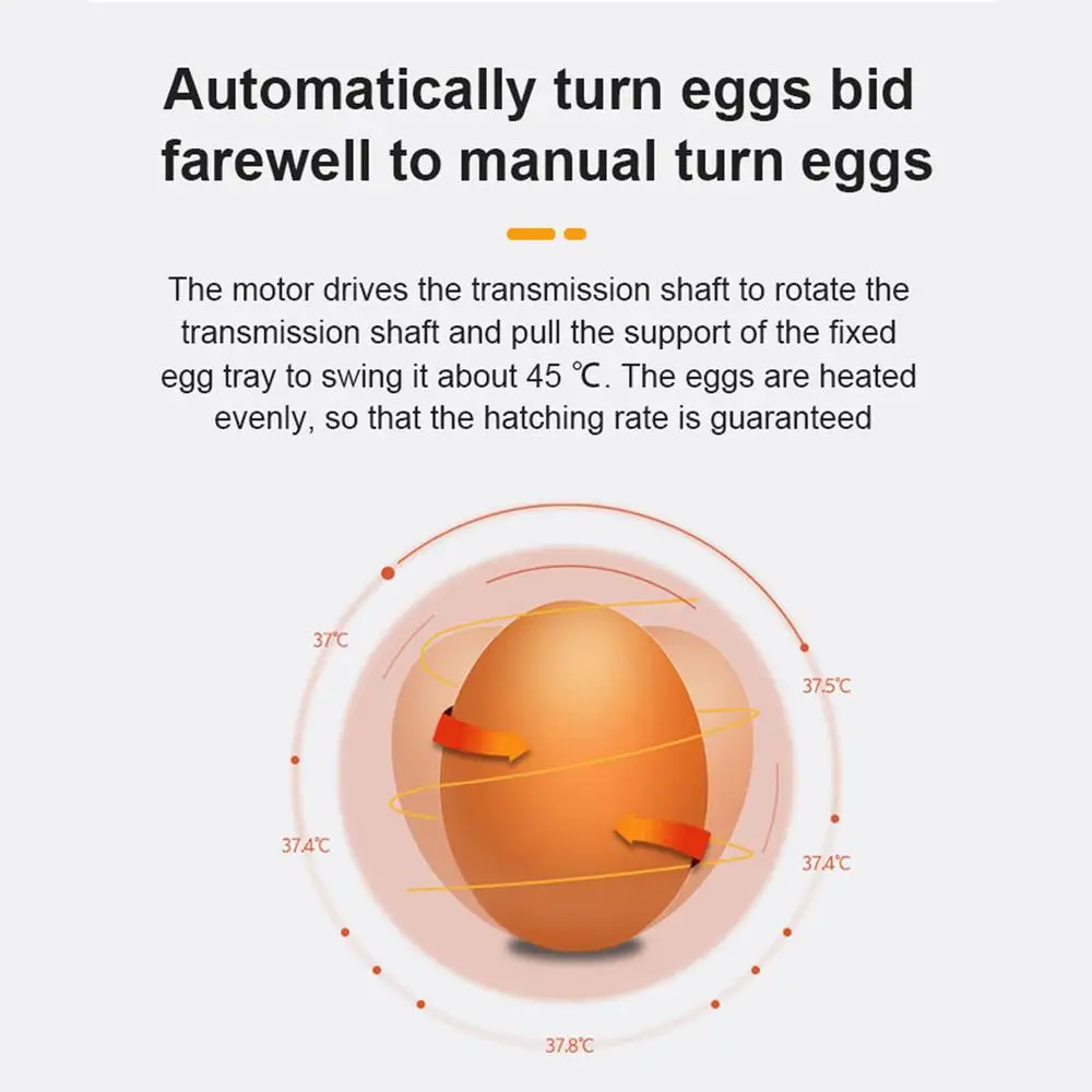 Bandeja automática para girar huevos: giro automático de huevos varias veces al día para garantizar que todas las partes del huevo se calienten uniformemente.