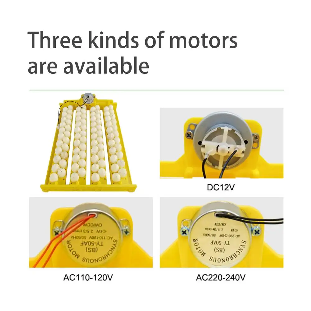 Fácil de usar: el motor eléctrico es seguro, estable y fácil de usar.Automatiza completamente los tediosos requisitos de volcar huevos incubados.