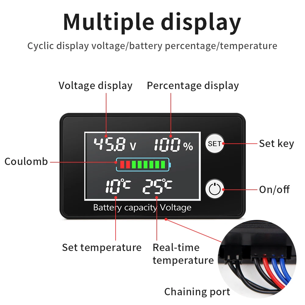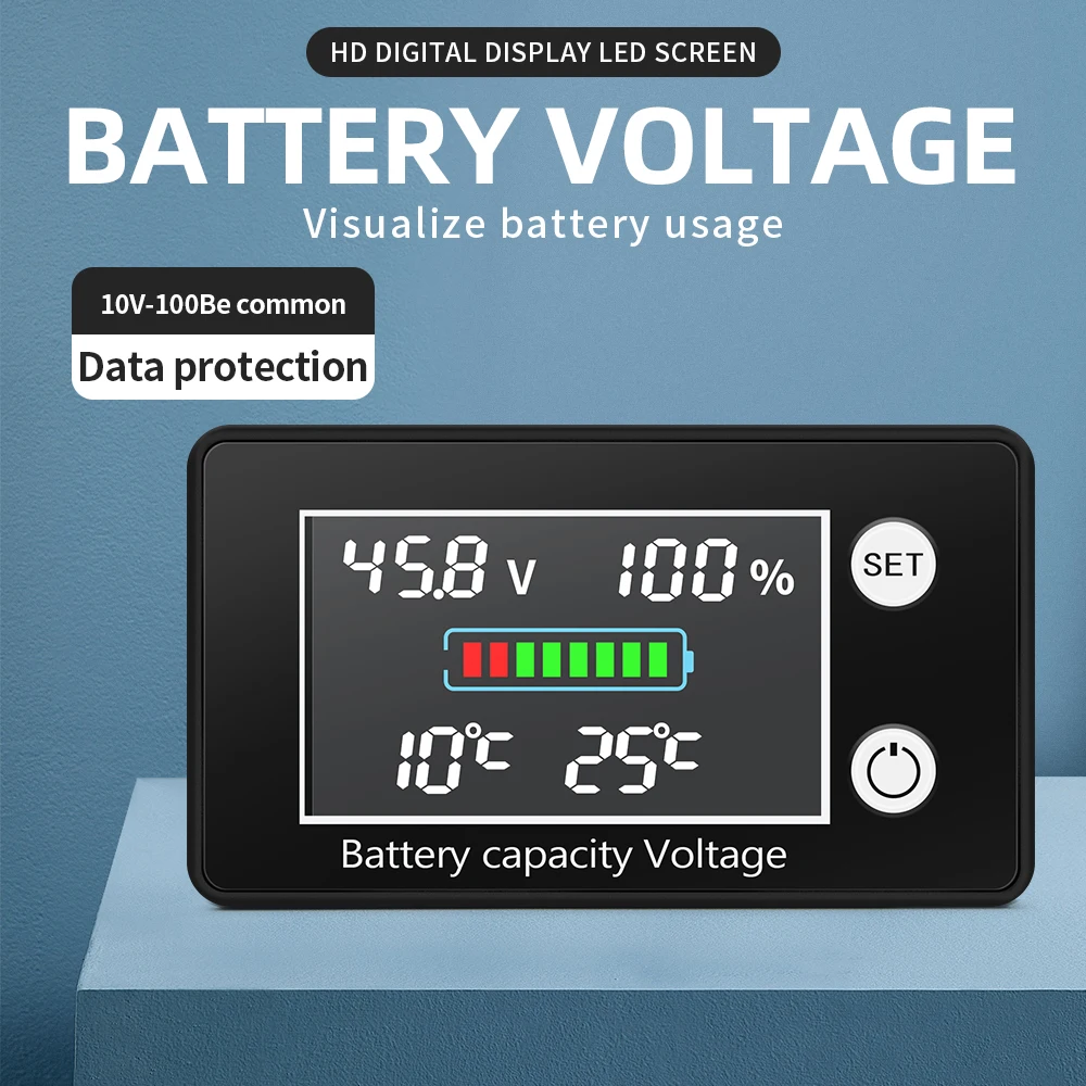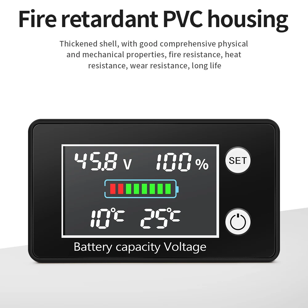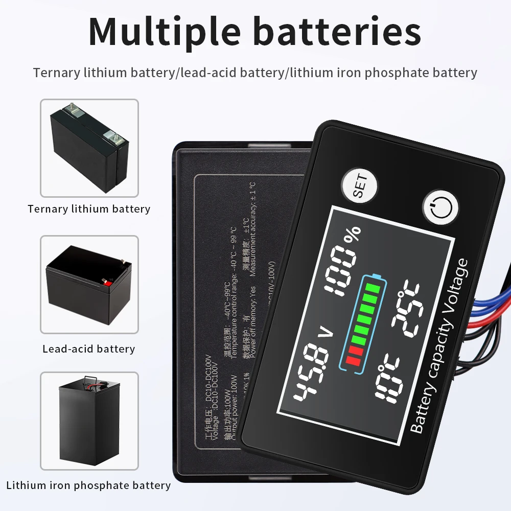 Indicador de capacidad de la batería, voltímetro de batería de litio de plomo y ácido a Color LCD, probador de voltaje Digital, Control de temperatura