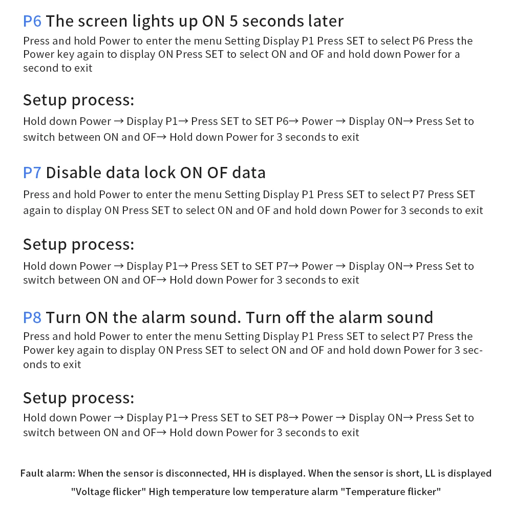 9. Alarma de alta y baja temperatura: Sí (-40 ℃ ~ 99 ℃)