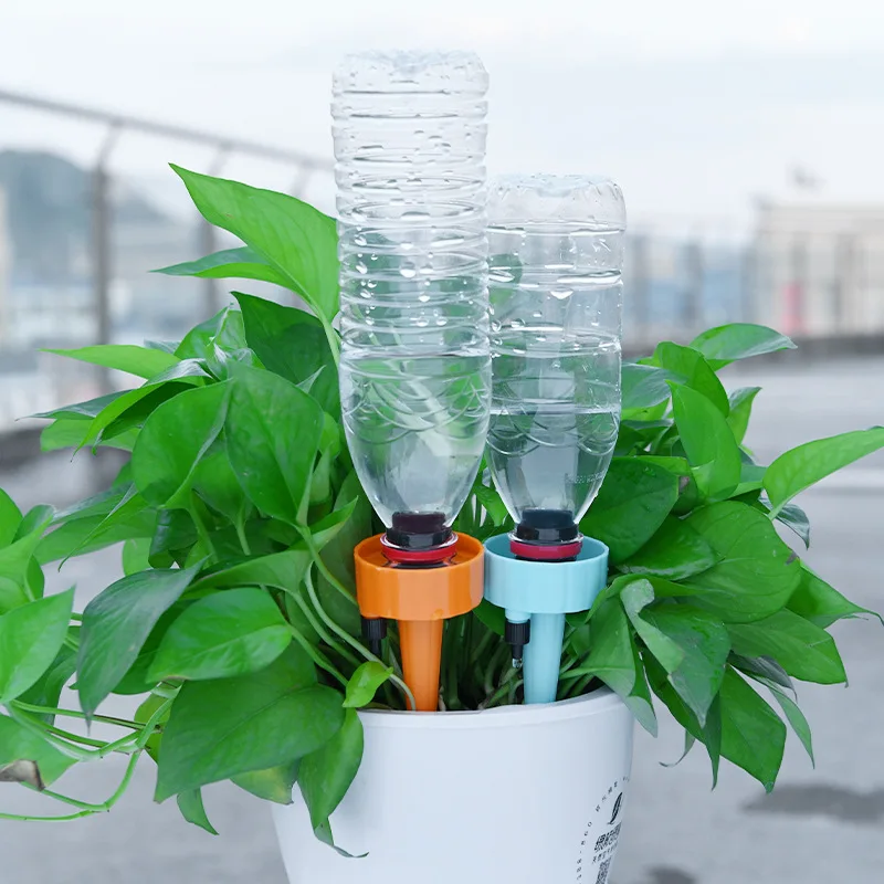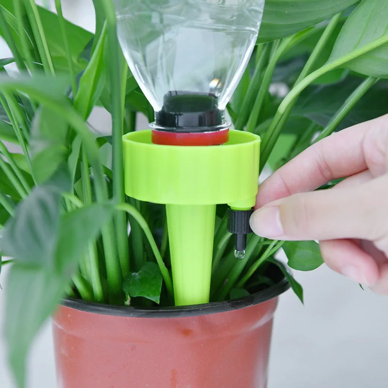 5, el dispositivo de riego ensamblado se inserta en la maceta para fijar