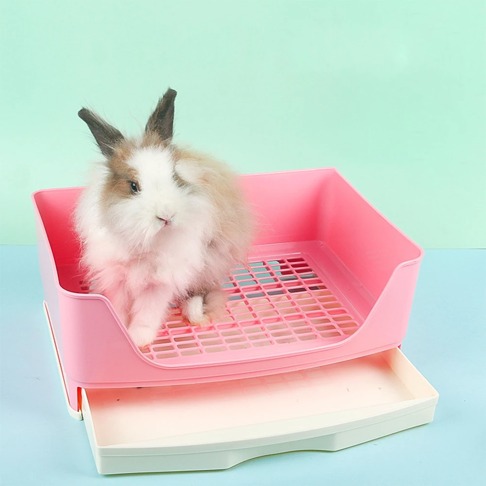 Inodoro con cajón grande para mascota, conejo, anticaída, fijo en jaula, Animal pequeño, conejillo de indias, hámster para adultos, entrenador de orinal fácil de limpiar