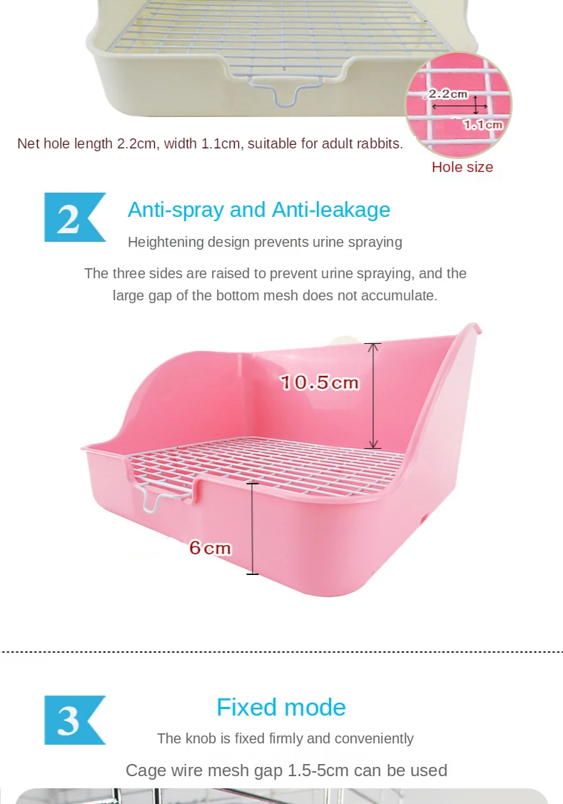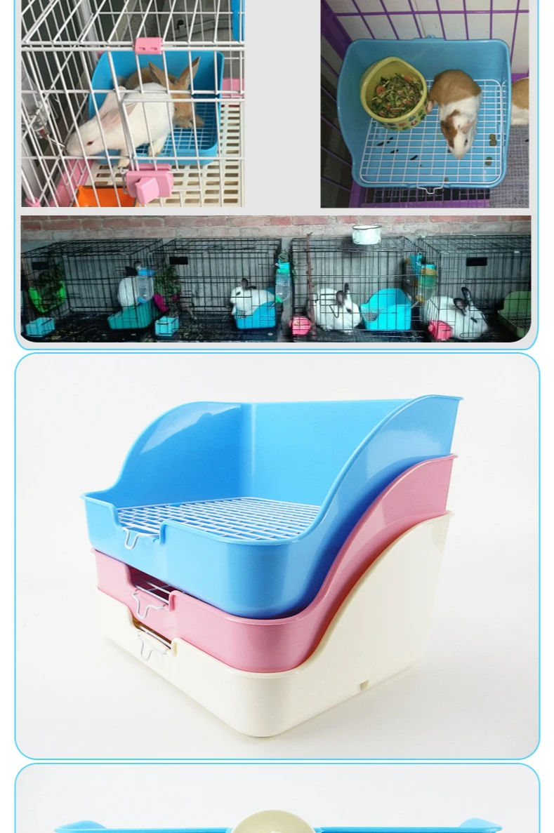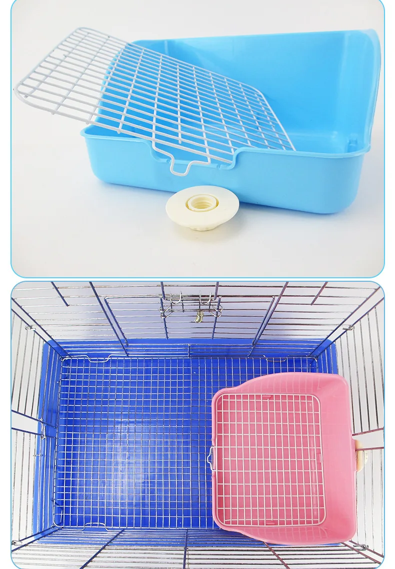 Inodoro para conejos, inodoro grande para mascotas, orinal de conejito a prueba de pulverización, perilla de malla inferior de alambre de acero, conejo fijo, Chinchilla, uso de jaula para conejillo de indias