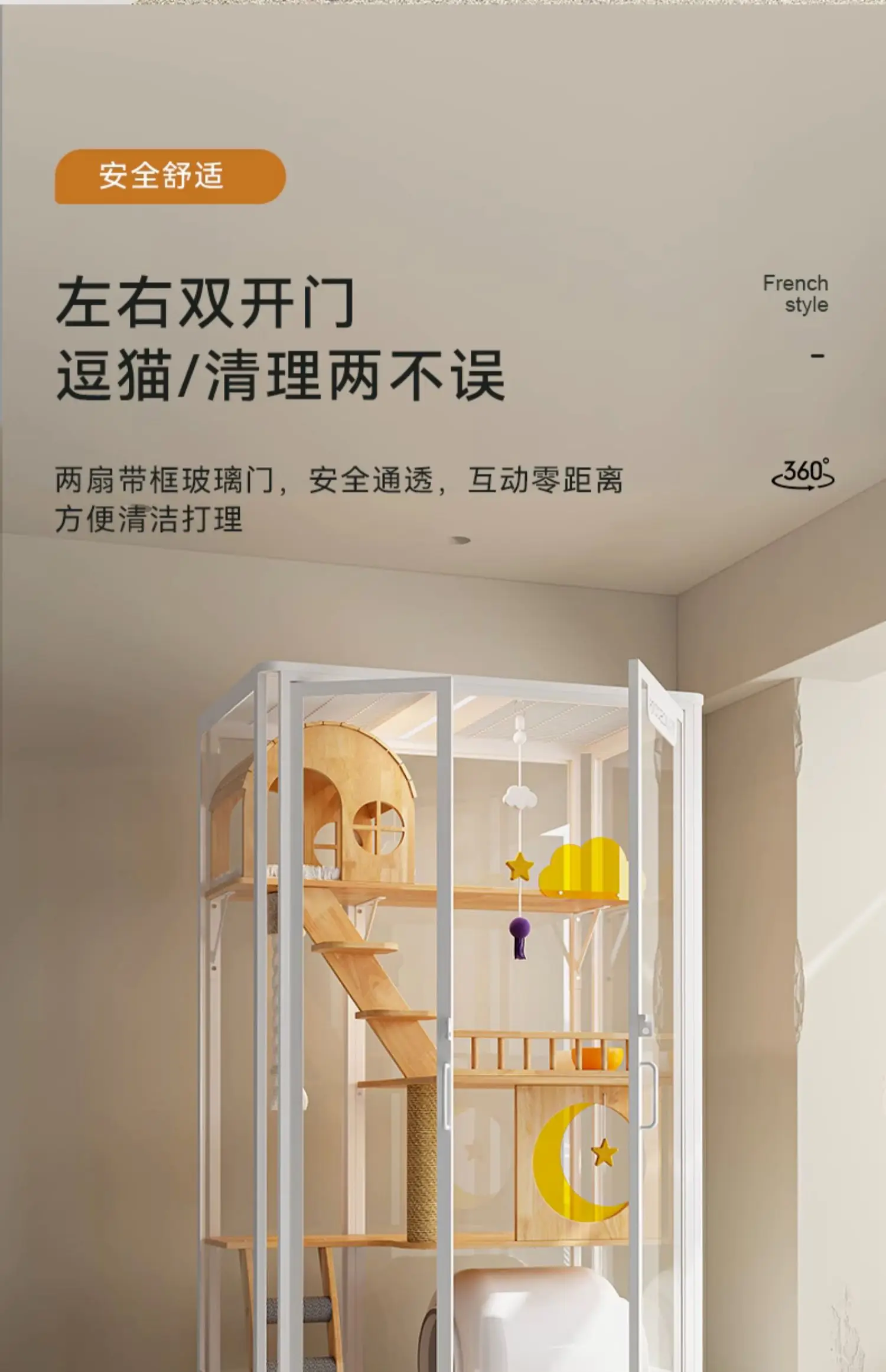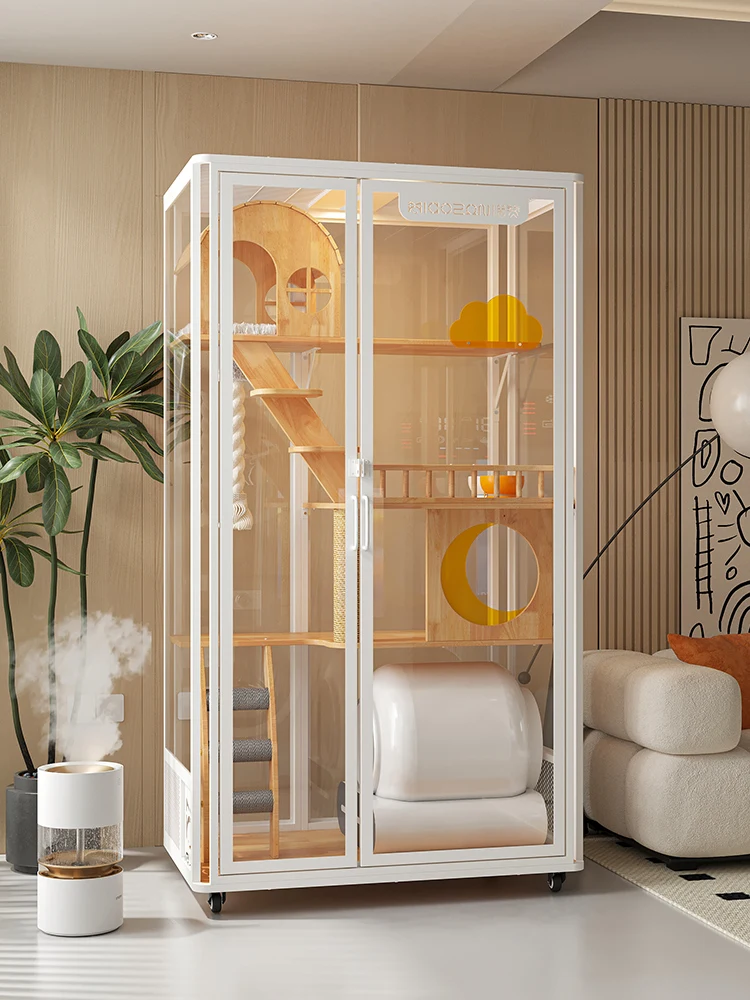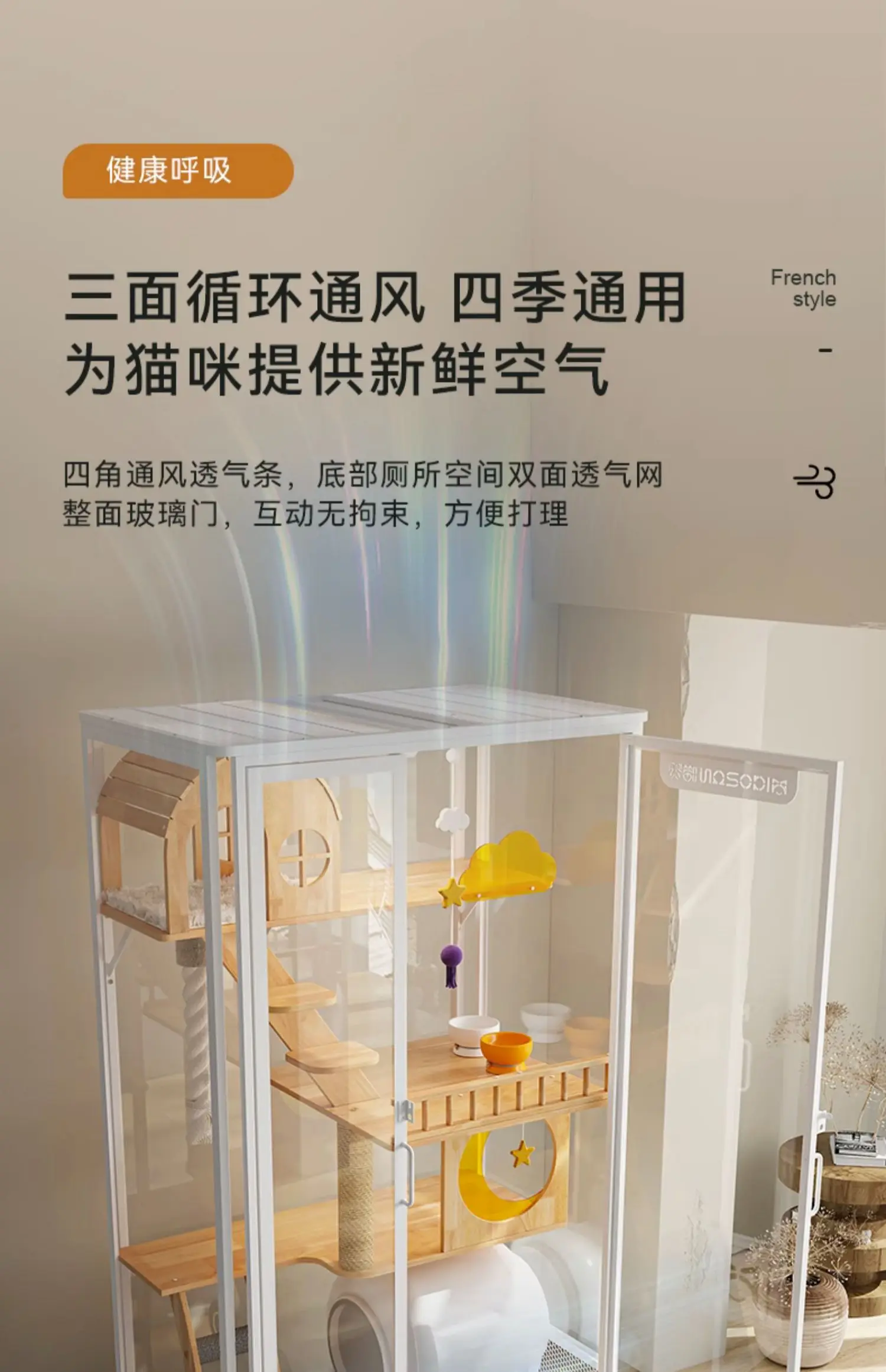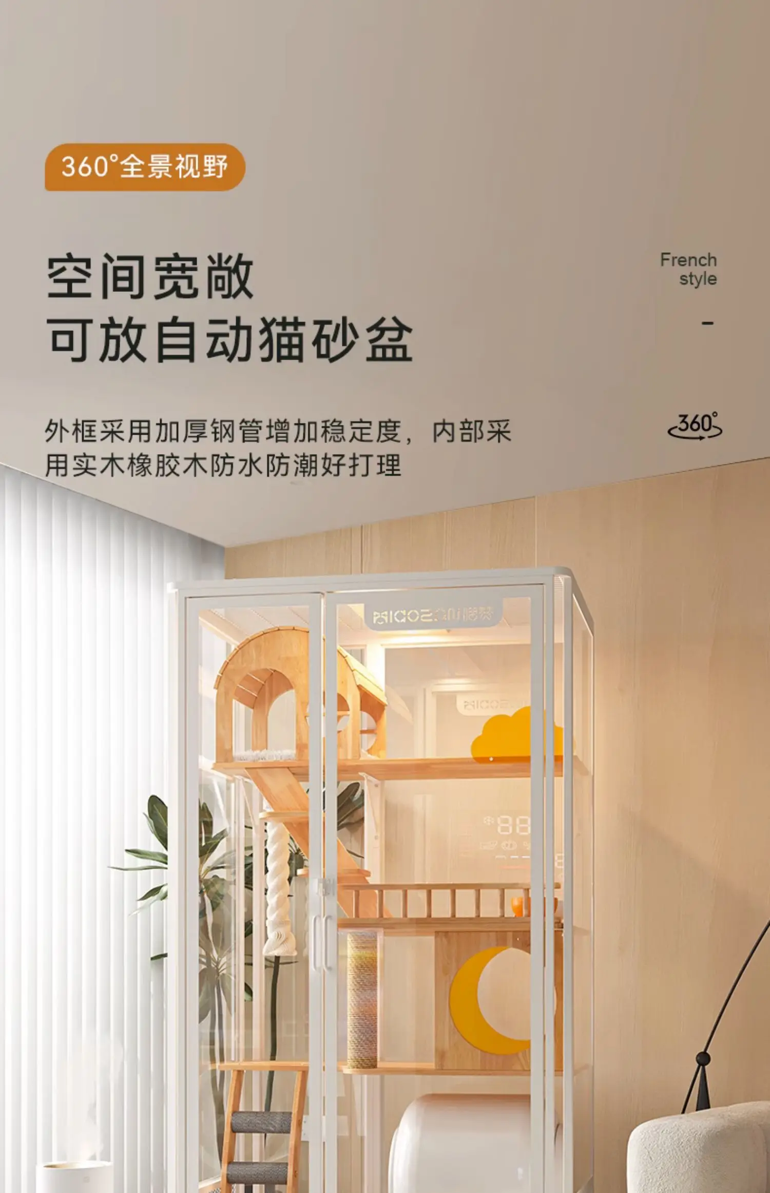 Inodoro de madera maciza serie blanca panorámica, Villa de lujo para gatos, inodoro inteligente para gatos, gran espacio