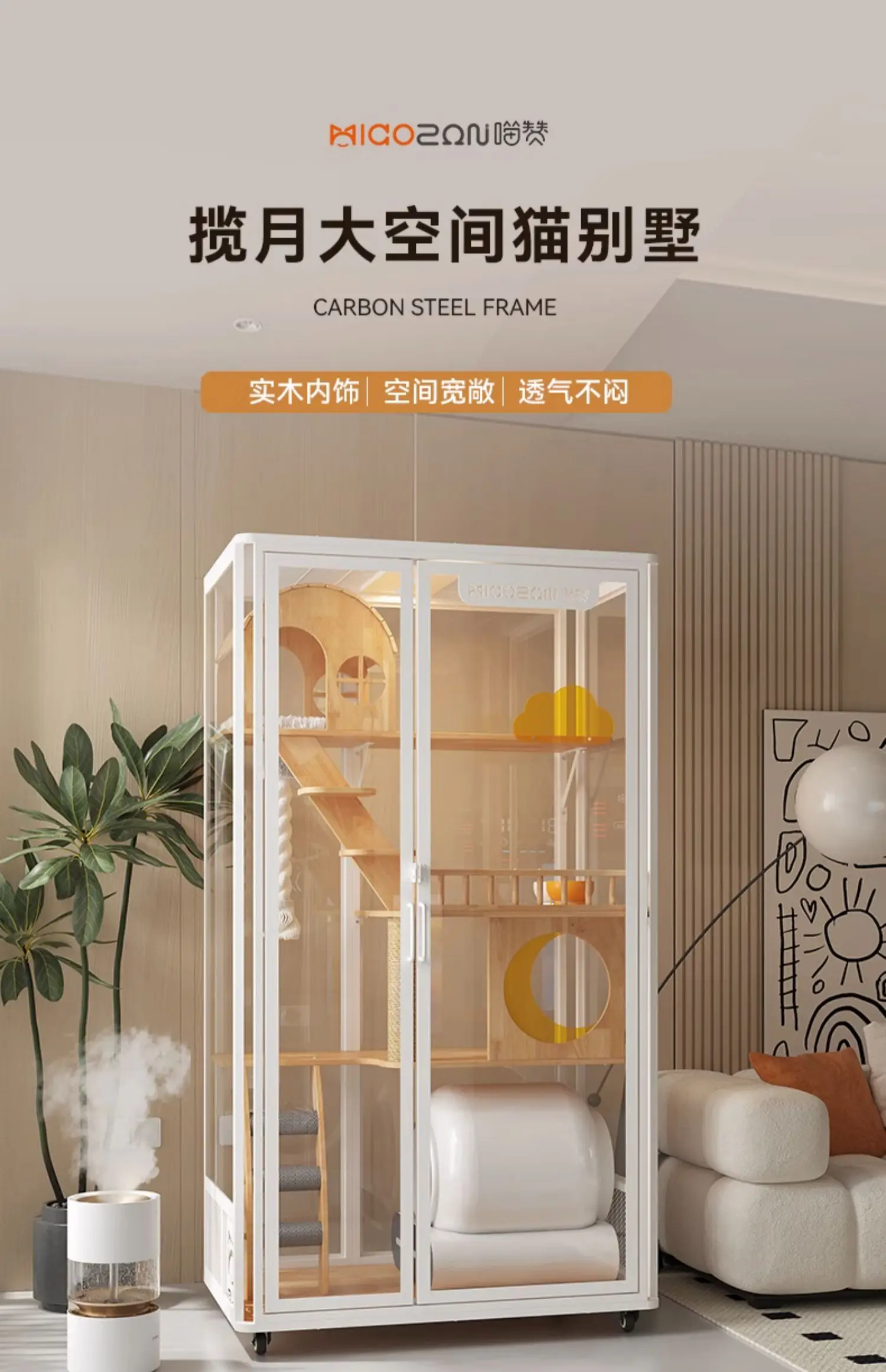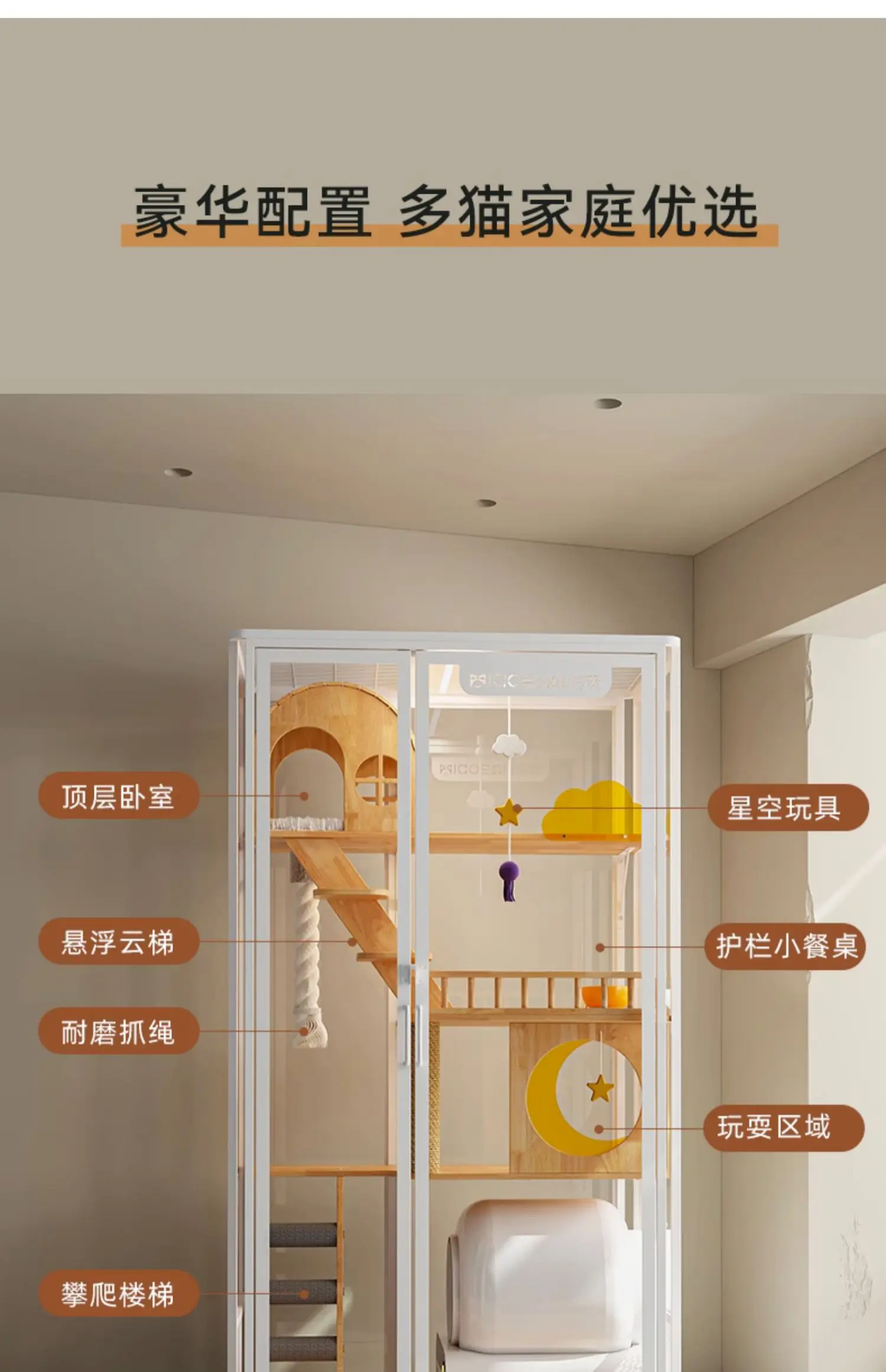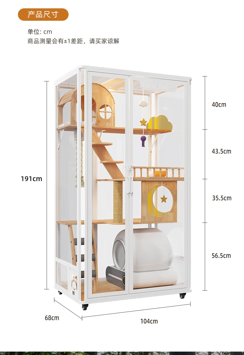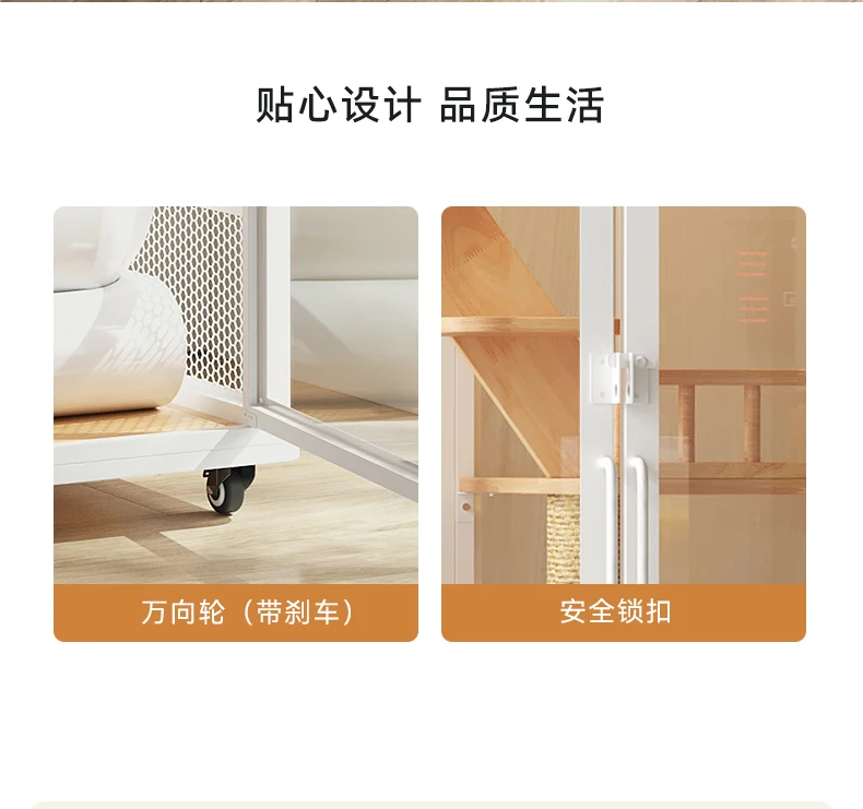 Inodoro de madera maciza serie blanca panorámica, Villa de lujo para gatos, inodoro inteligente para gatos, gran espacio