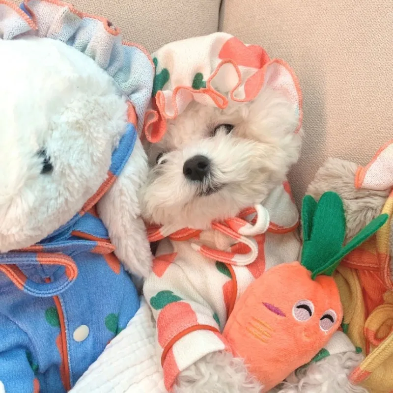 INS 1/Set de ropa para cachorros de zanahoria, pijamas de lujo para perros, pijamas de peluche de seda suave, abrigo para mascotas, ropa para perros pequeños Shih Tzu