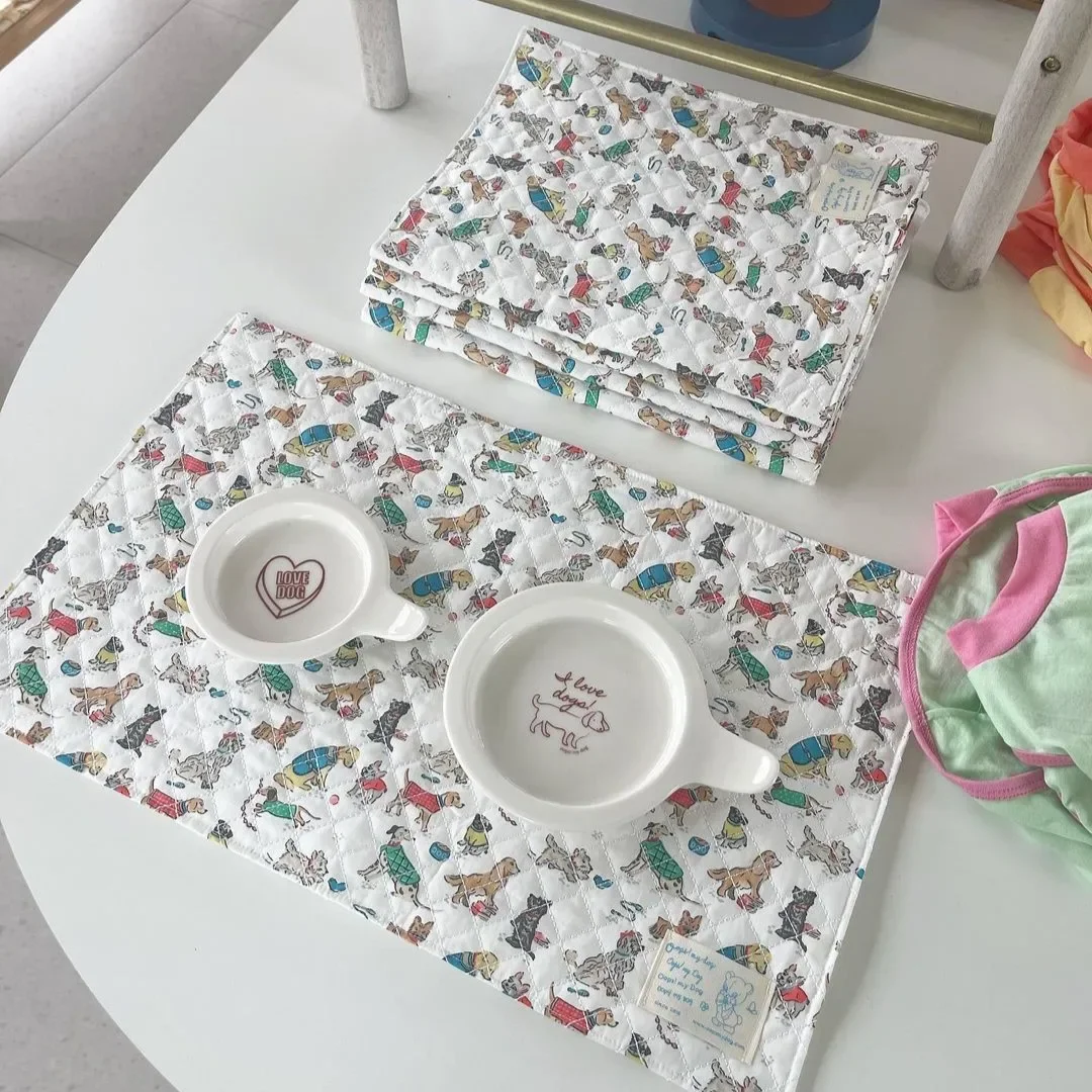 INS-alfombrilla antideslizante para comida de mascotas, tapete de algodón con estampado de dibujos animados para perros y gatos, no incluye cuenco, accesorios para perros, novedad