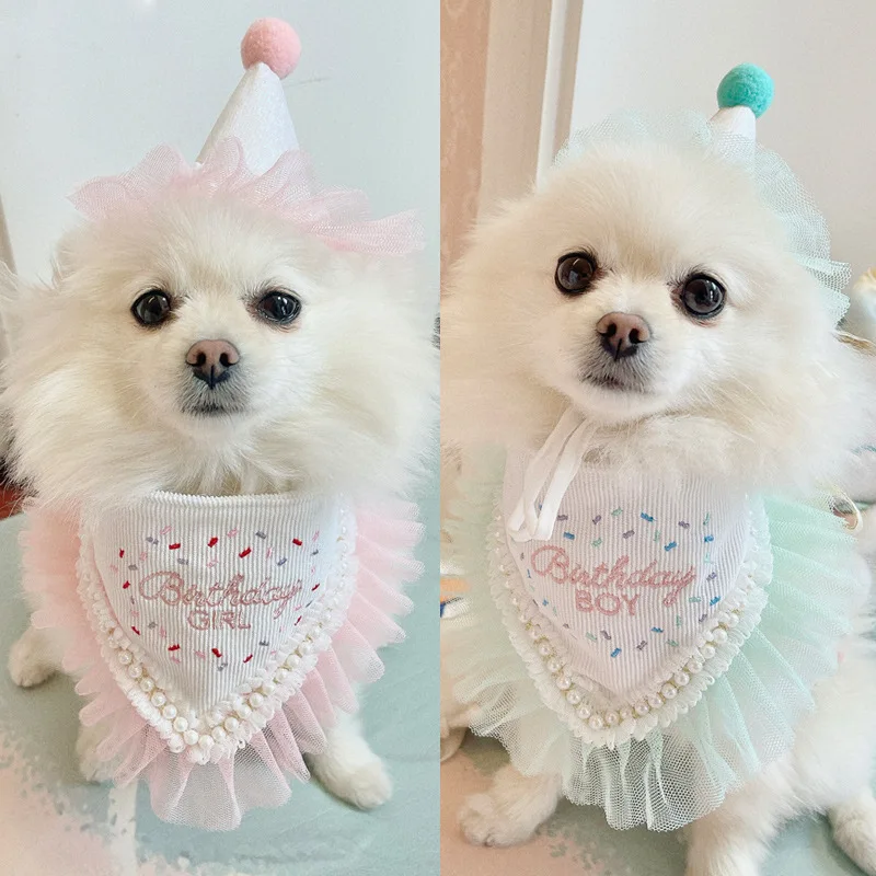 INS-babero de encaje para mascotas, toalla de Saliva para cumpleaños, bufanda triangular para mascotas, gato, perro, lindo, accesorios para mascotas