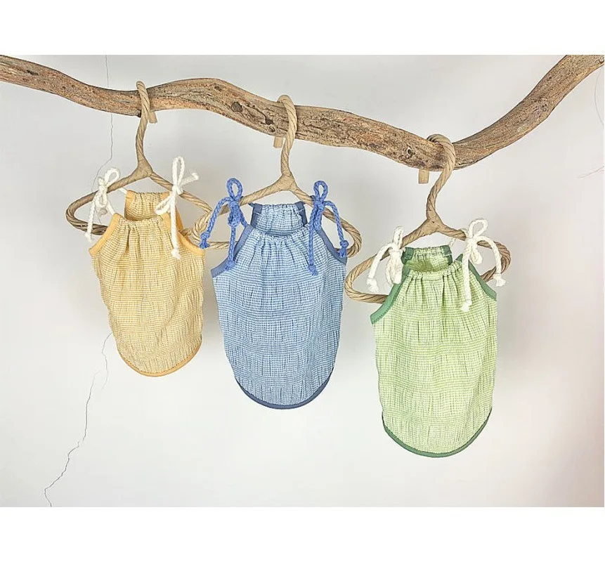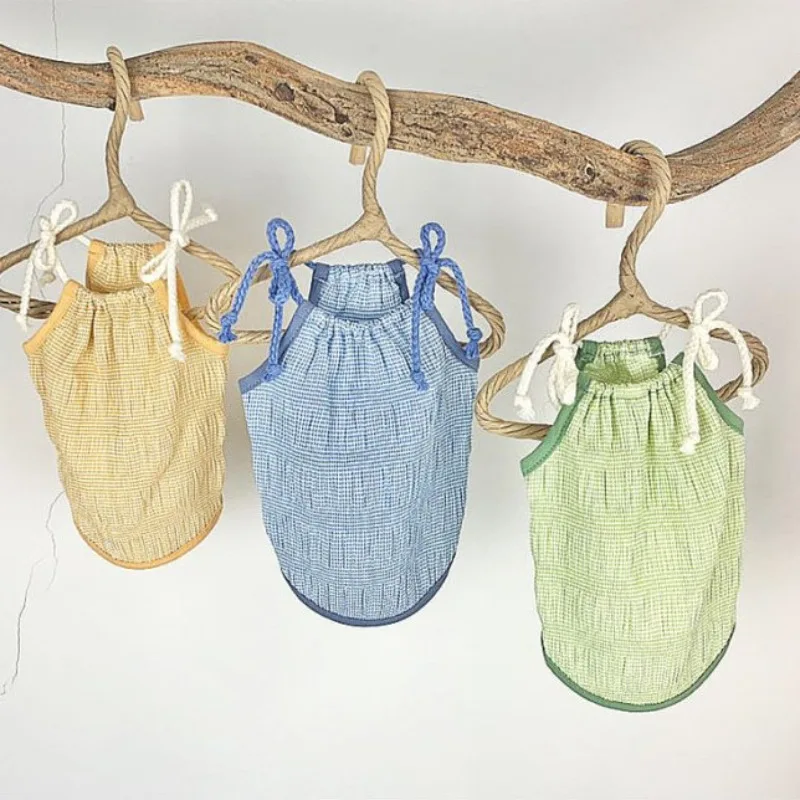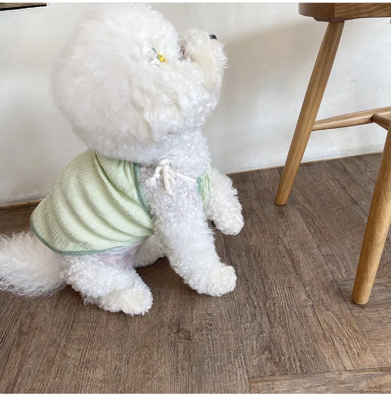 Ins lindo bonito a cuadros tirantes para perros mascota perro verano falda de encaje Teddy Pomeranian princesa falda cachorro lindo vestido de graduación