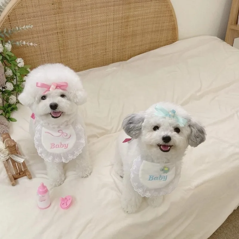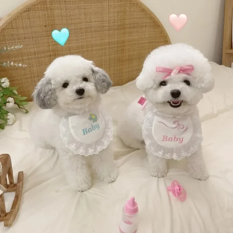 INS lindo encaje botella arco Baberos para mascotas algodón cómodo gato perro baba toalla cachorro Clip para el pelo conjunto decoraciones Collar accesorios para perros