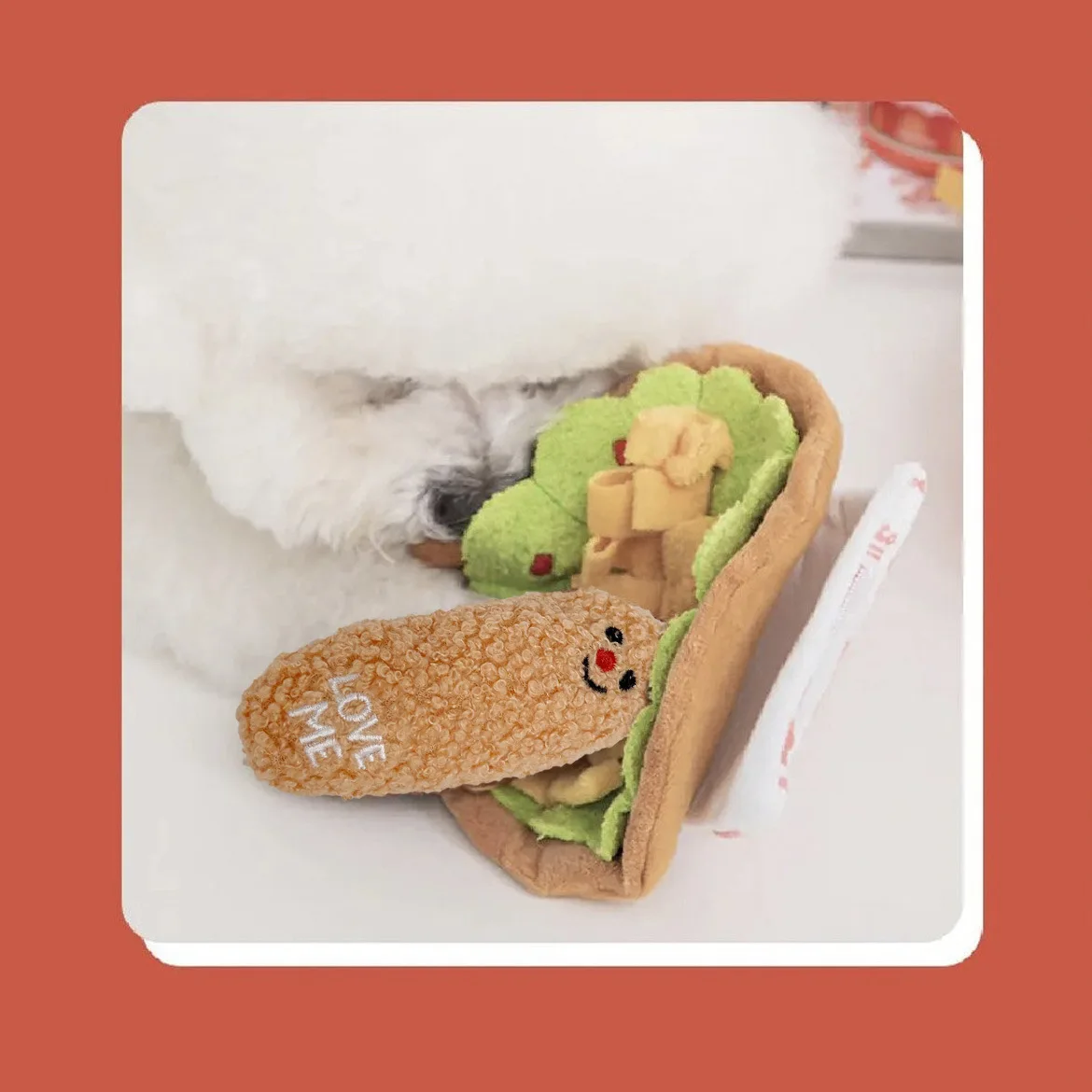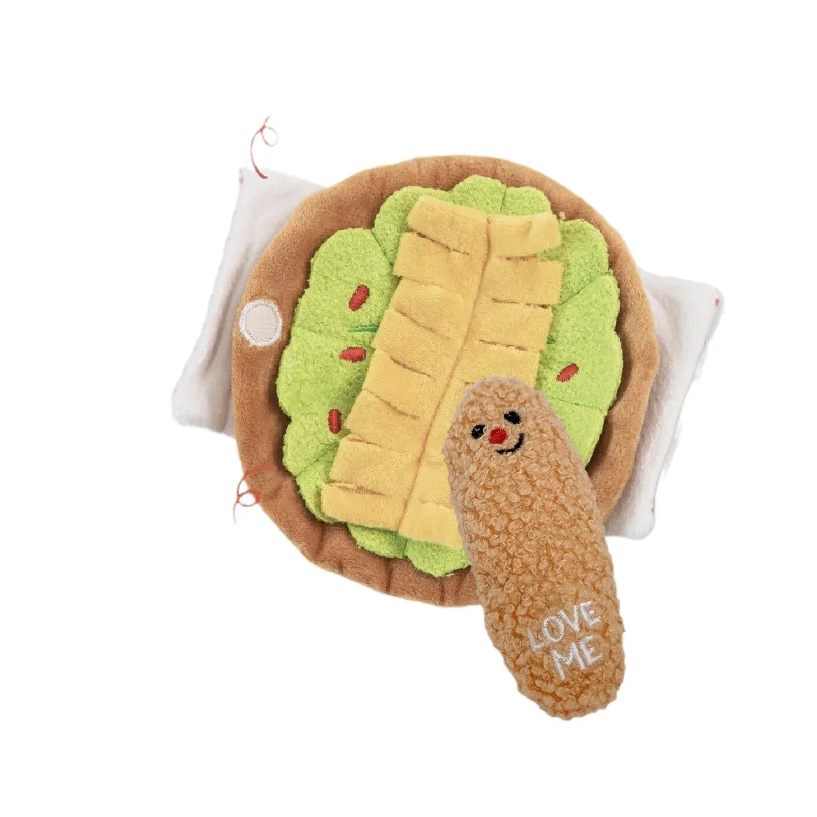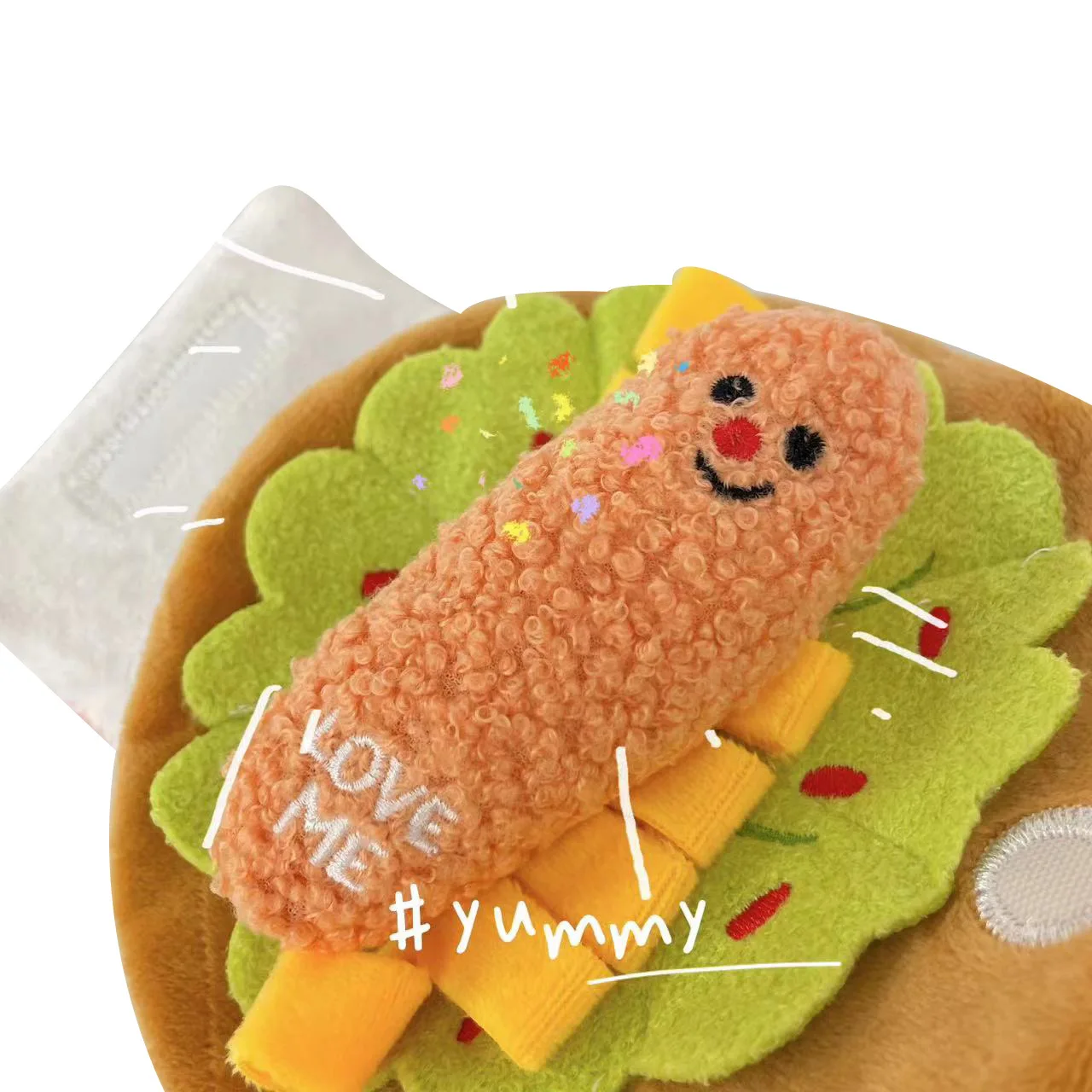 Ins lindo juguete oculto de olor a comida, pastel, voz de perro, juguete de peluche para mascotas, lindo vegetal, juguetes de comida ocultos, accesorios para perros Pomerian