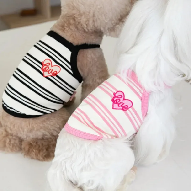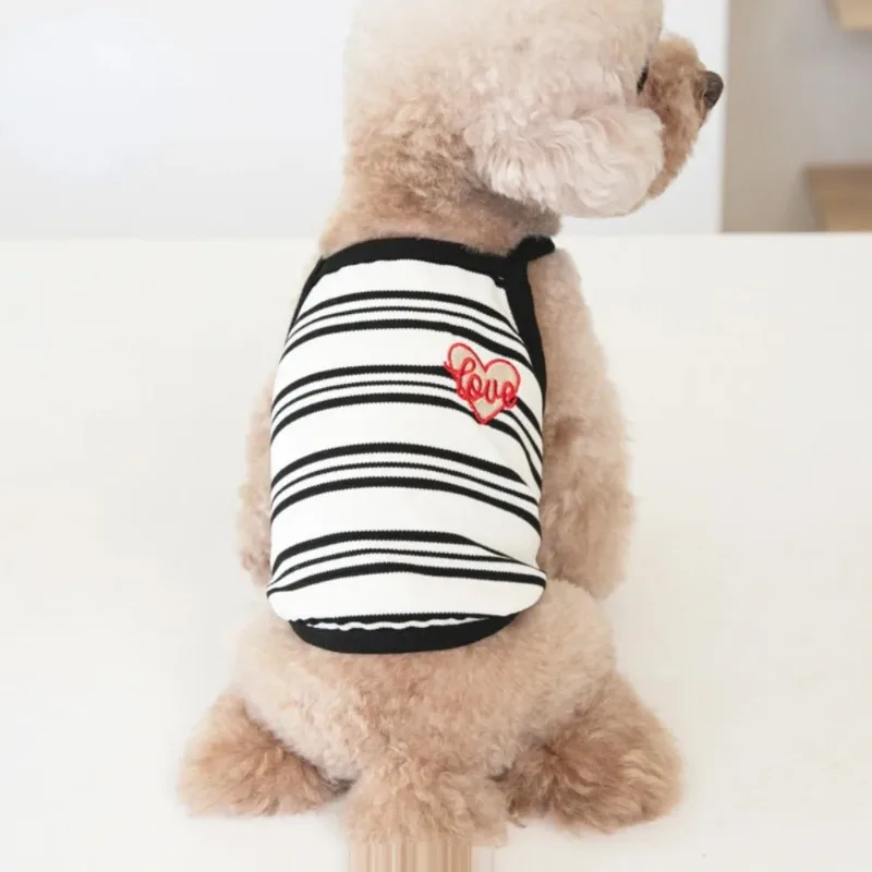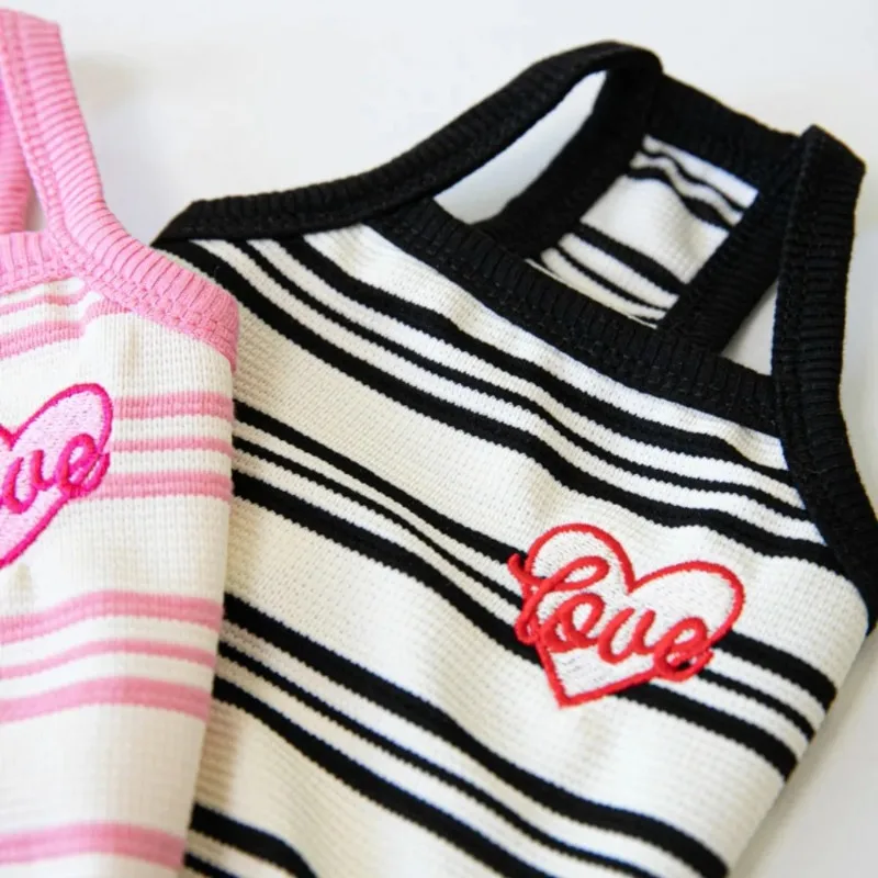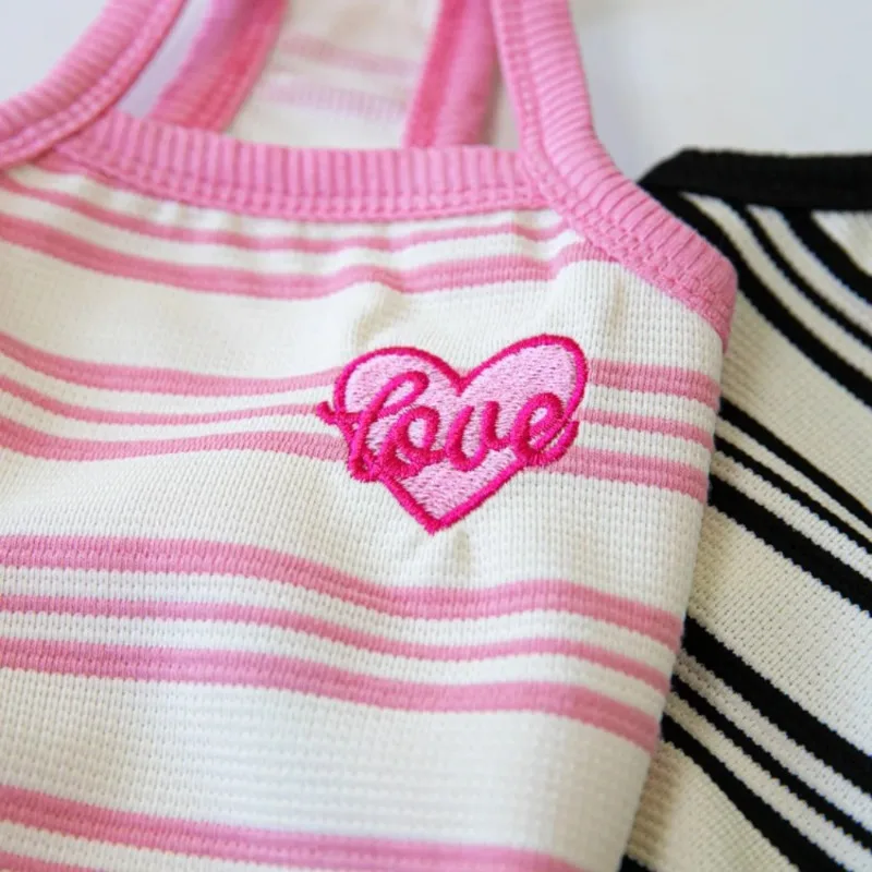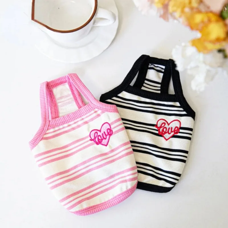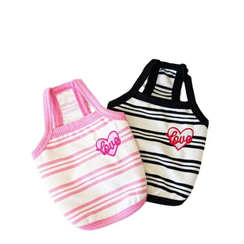 Ins mascota perro corto a rayas bordado tirantes mascota gato perro Teddy vestido lindo chaleco ropa para mascotas chaleco refrescante ropa para perros y cachorros