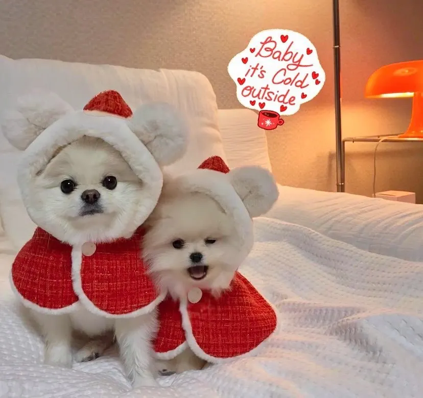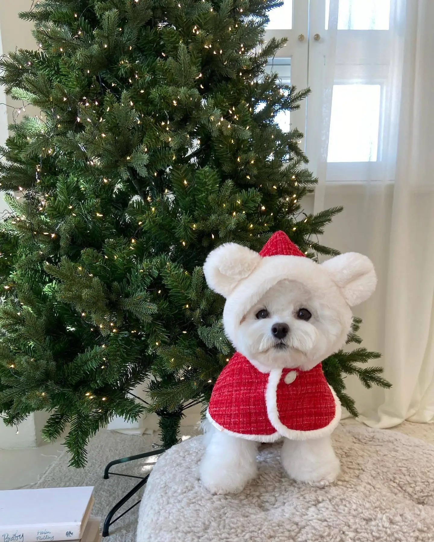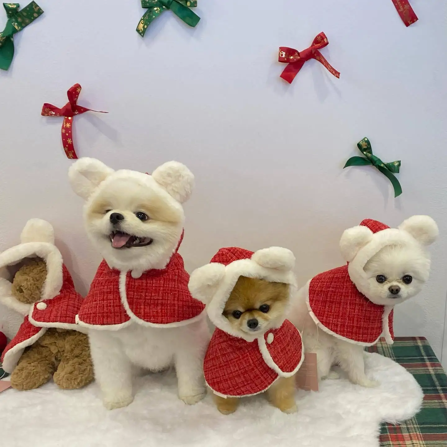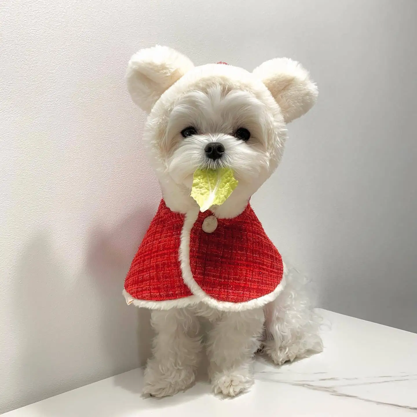 INS Navidad capa para mascotas orejas babero con capucha capa calidez maltés Año nuevo ropa de fiesta para perros abrigo para mascotas diseño de perro de moda ropa para perros
