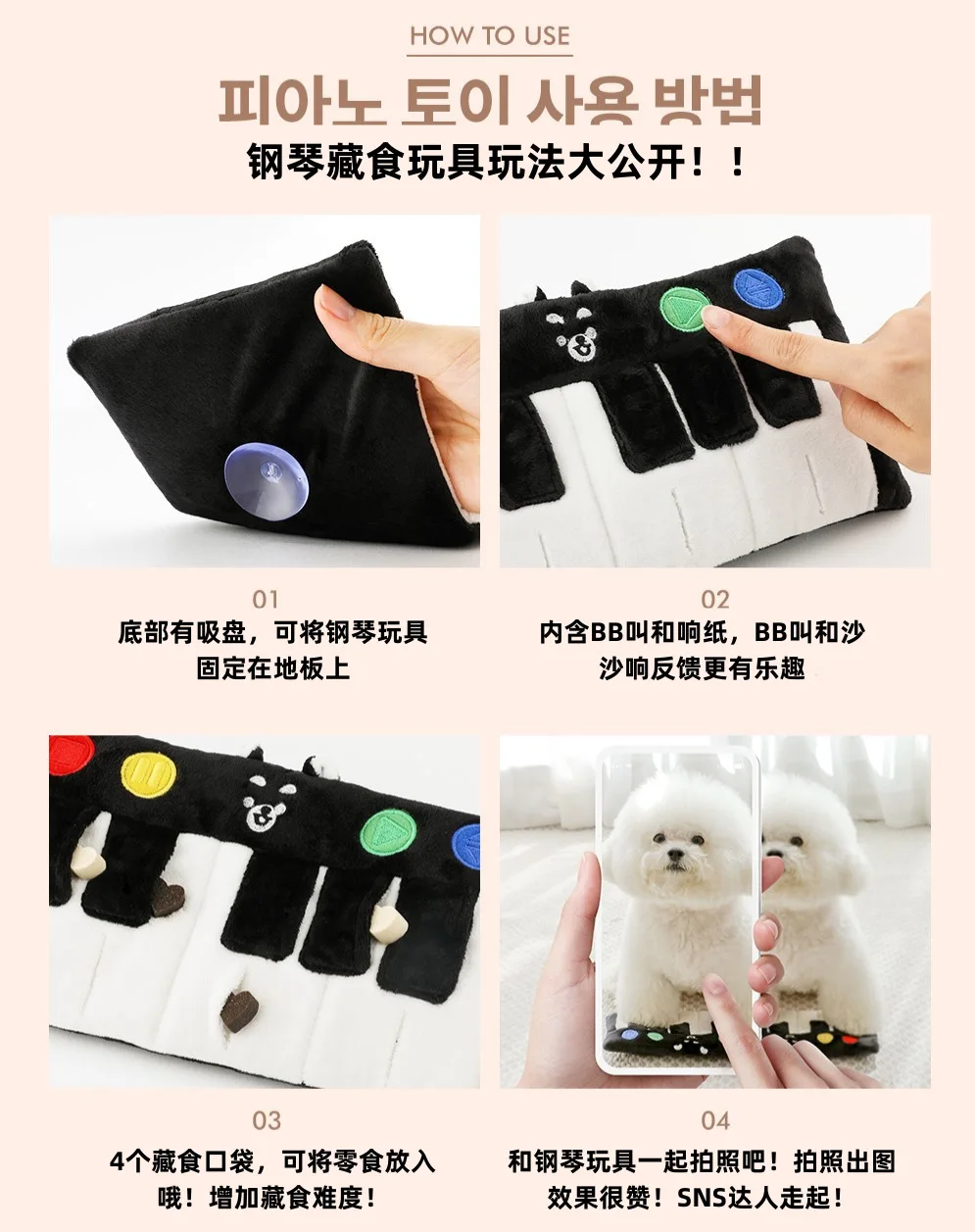 Ins nuevo Piano de dibujos animados juguete de comida oculta juguete chirrido perro juguete interactivo perro nosework juguete diseño de moda perro compañero juguetes