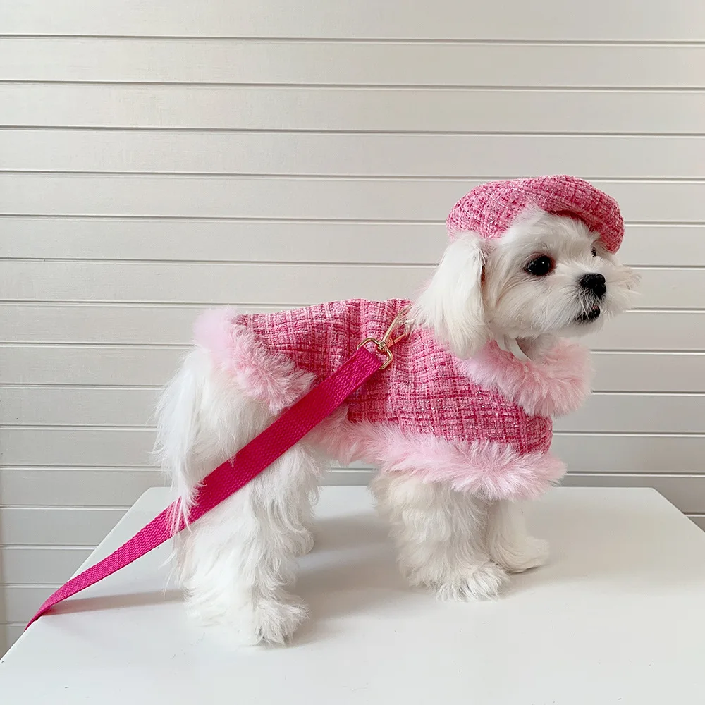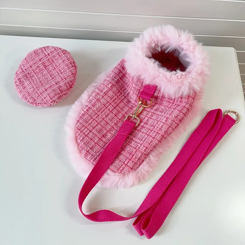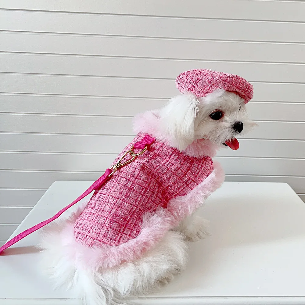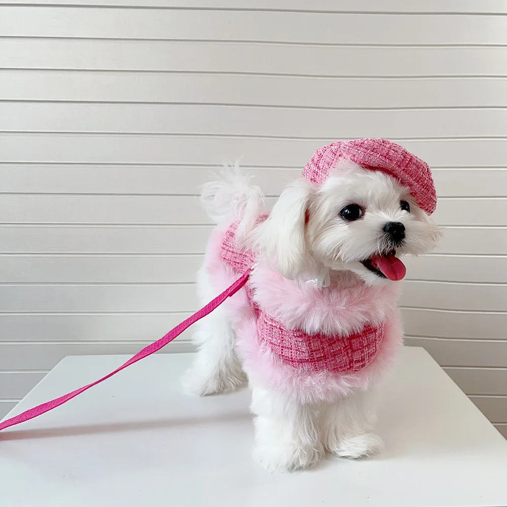 INS Pink-capa de felpa para perro, suministros para mascotas, correa para el pecho, cuerda de tracción para gato, Boina bonita para pareja, chaleco para perros, disfraz para perros