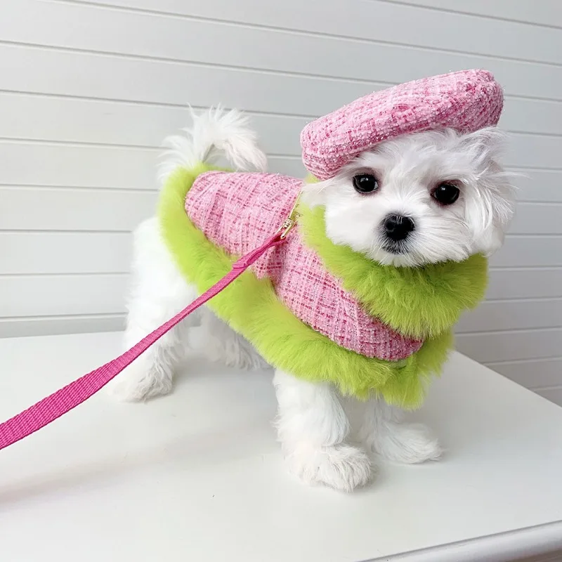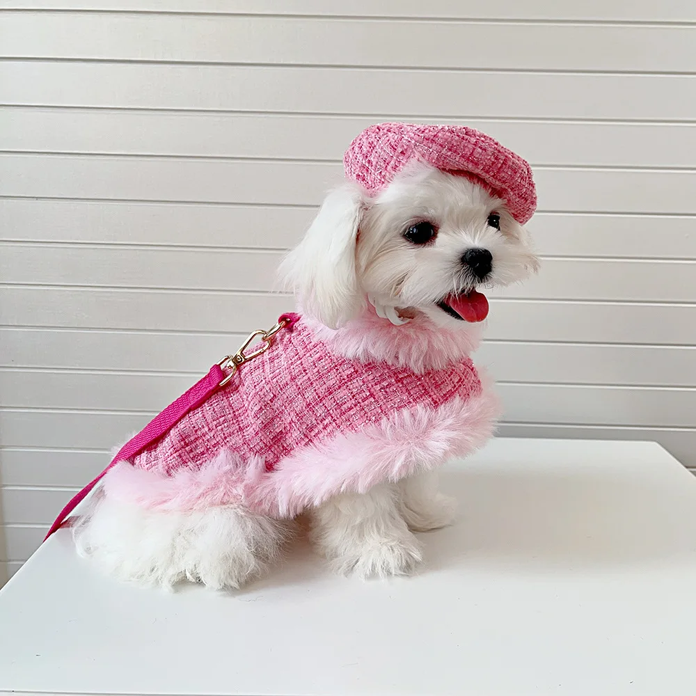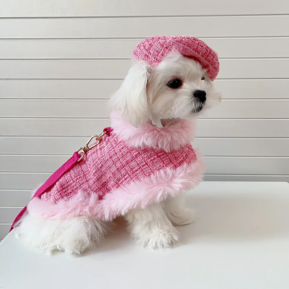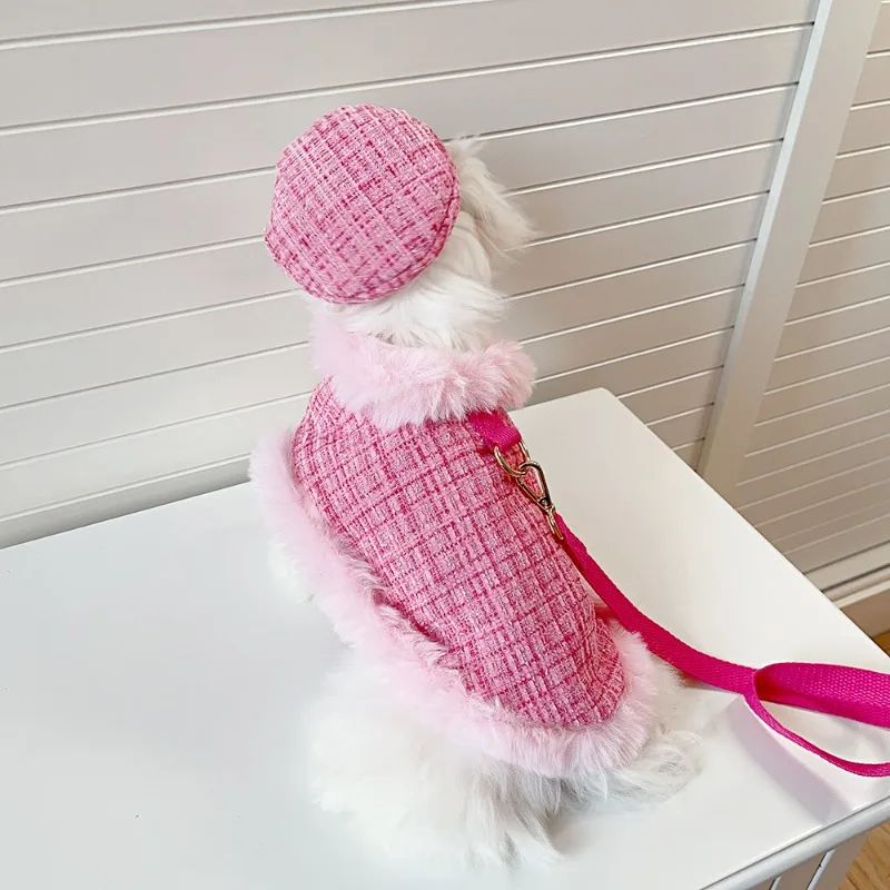 INS Pink-capa de felpa para perro, suministros para mascotas, correa para el pecho, cuerda de tracción para gato, Boina bonita para pareja, chaleco para perros, disfraz para perros