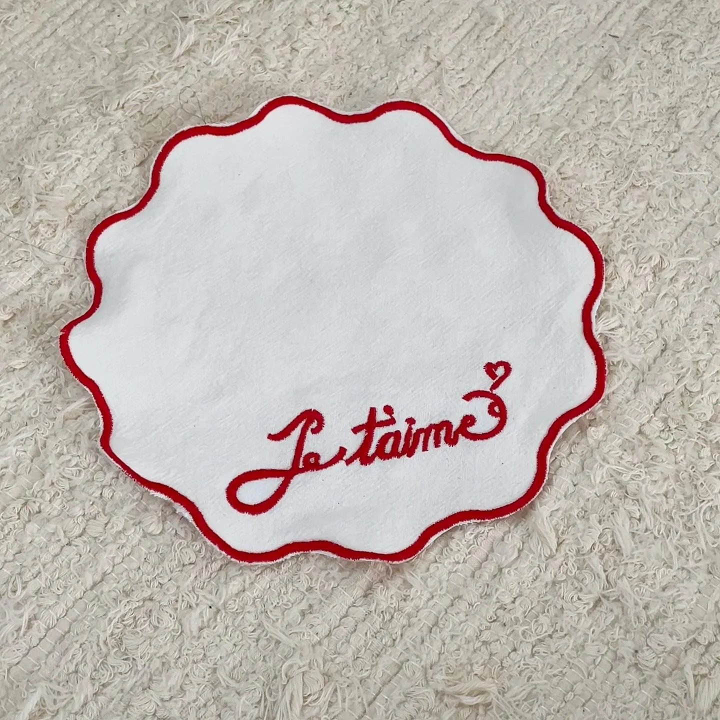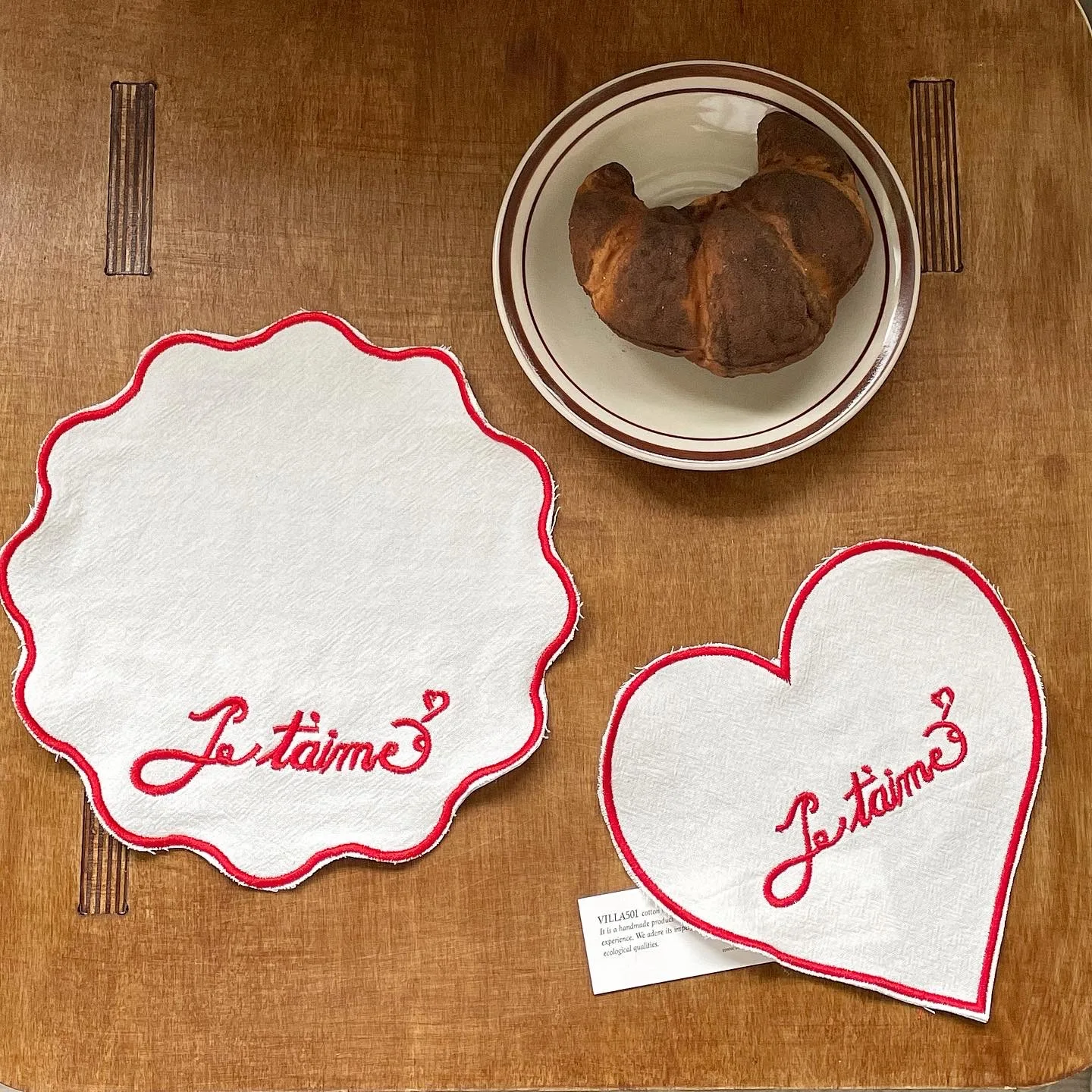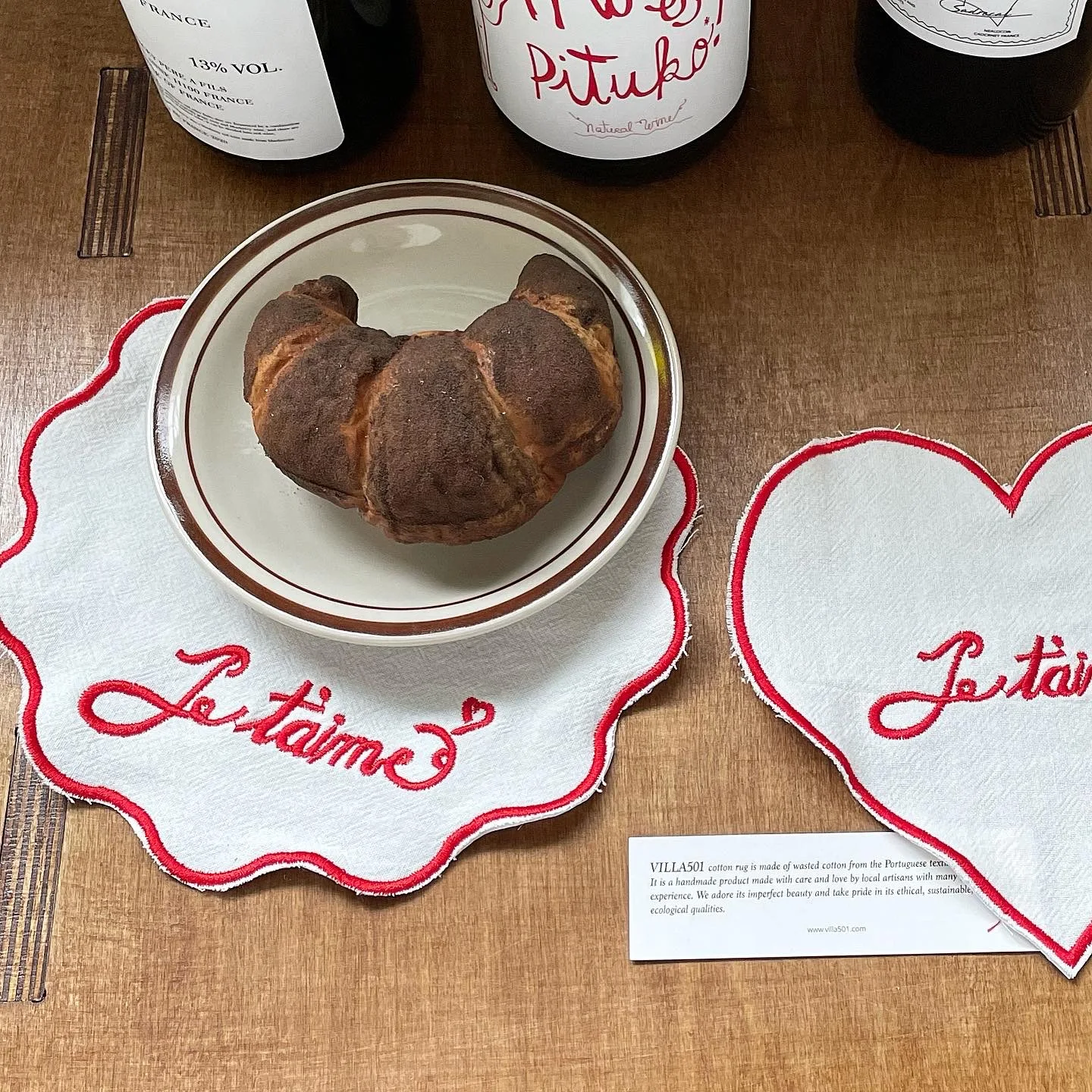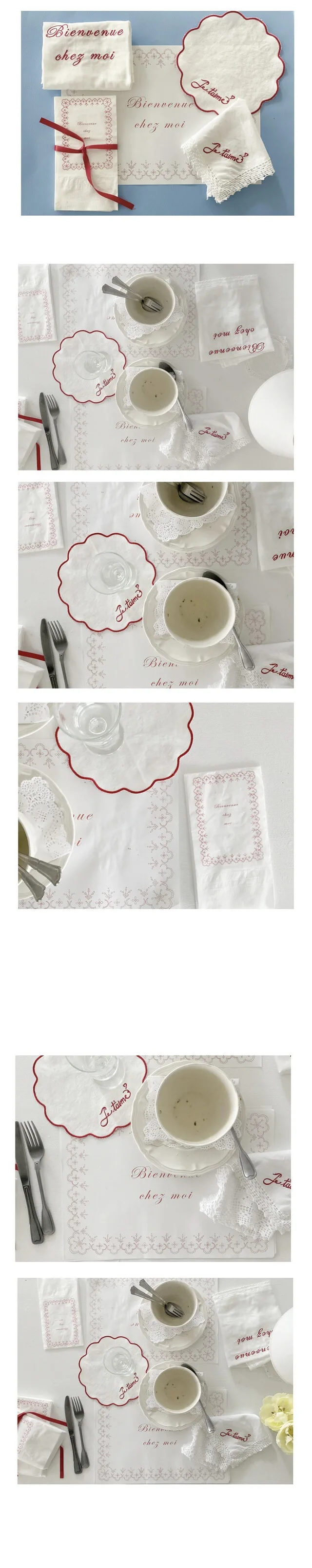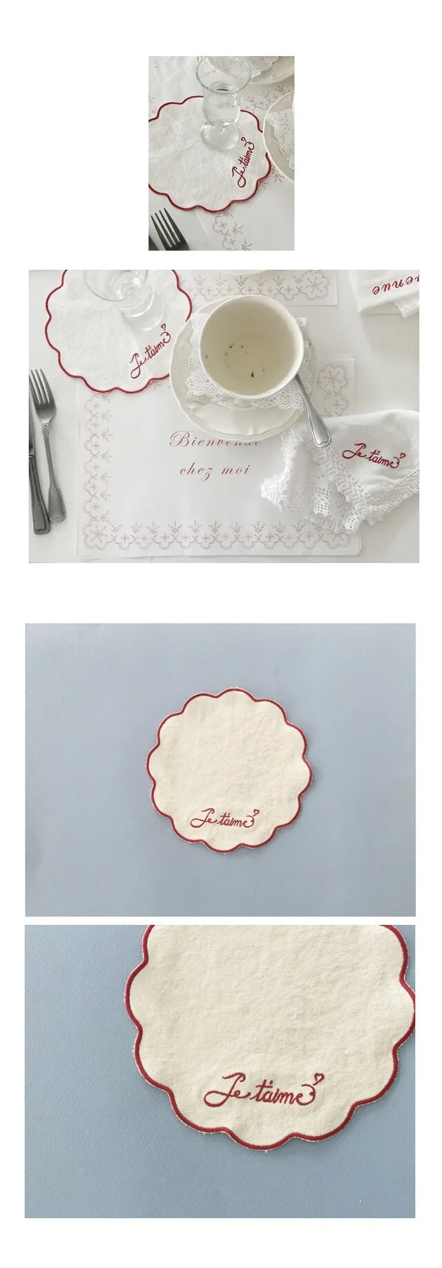 Ins-vajilla bordada francesa para mascotas, alfombrilla de algodón puro con flores de amor, accesorio decorativo para mesa, cuenco para perros y cachorros
