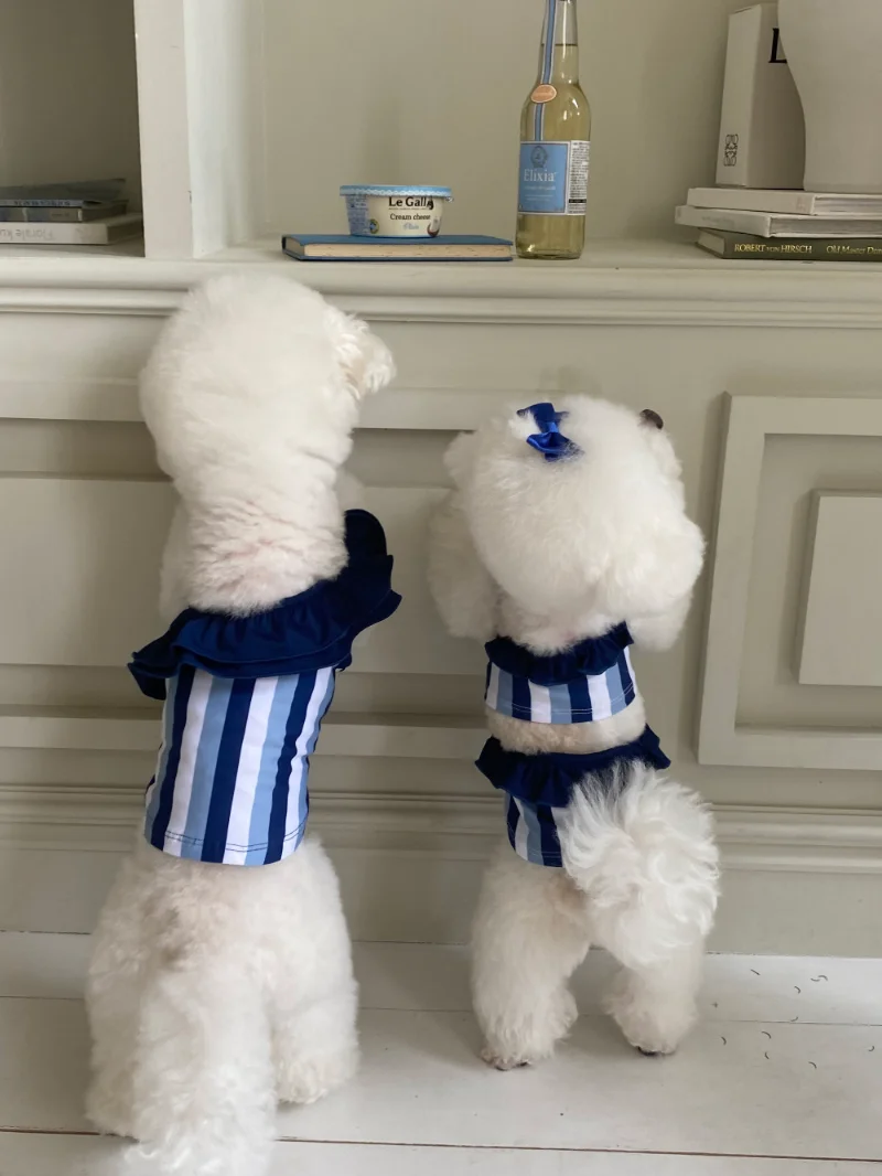 Ins verano al aire libre rayas mascota una pieza chaleco Sling cachorro ropa para perros gato perro Bikini Lycra hielo transpirable traje de baño ropa para perros
