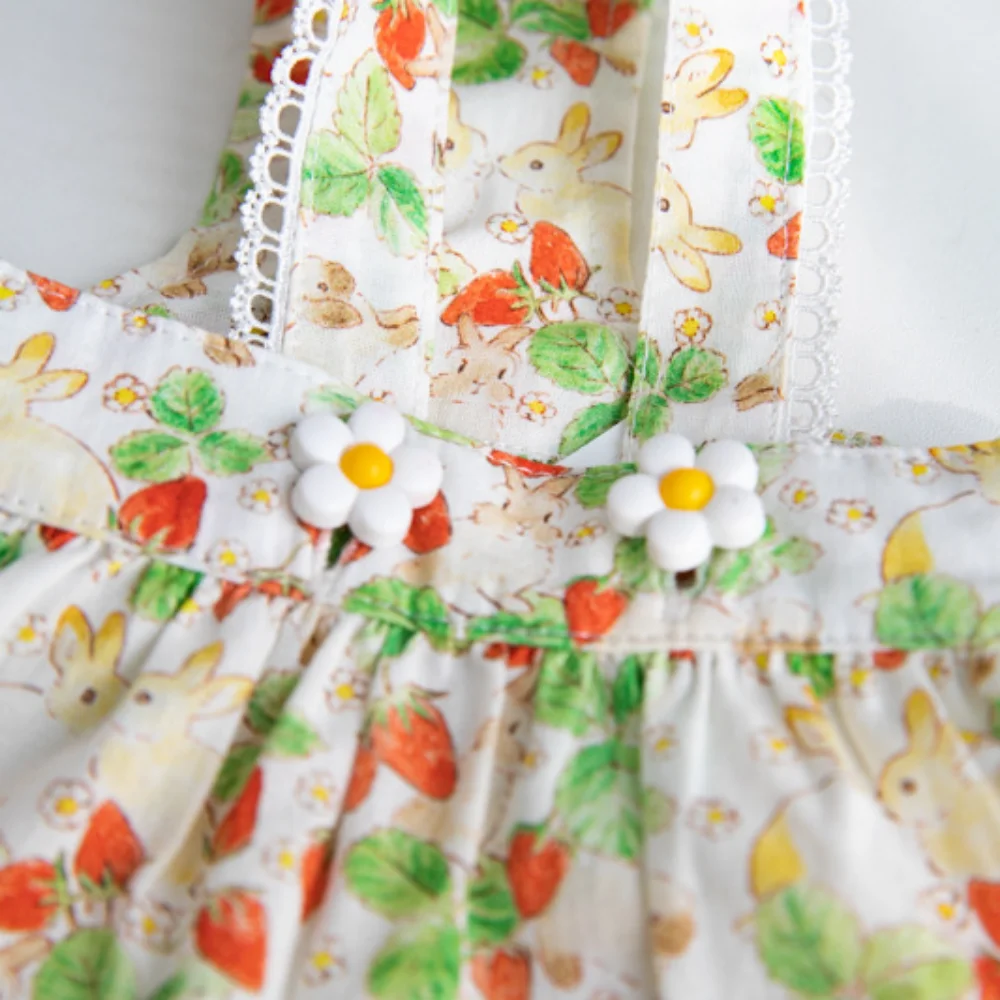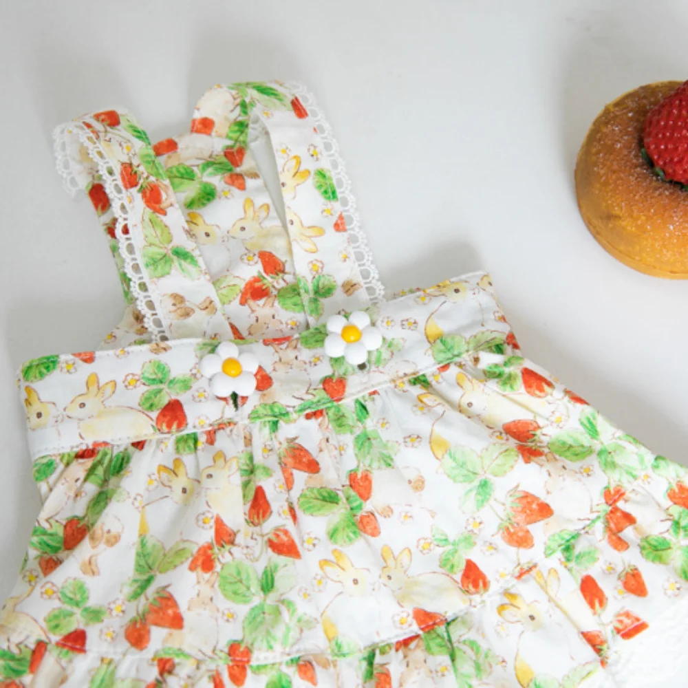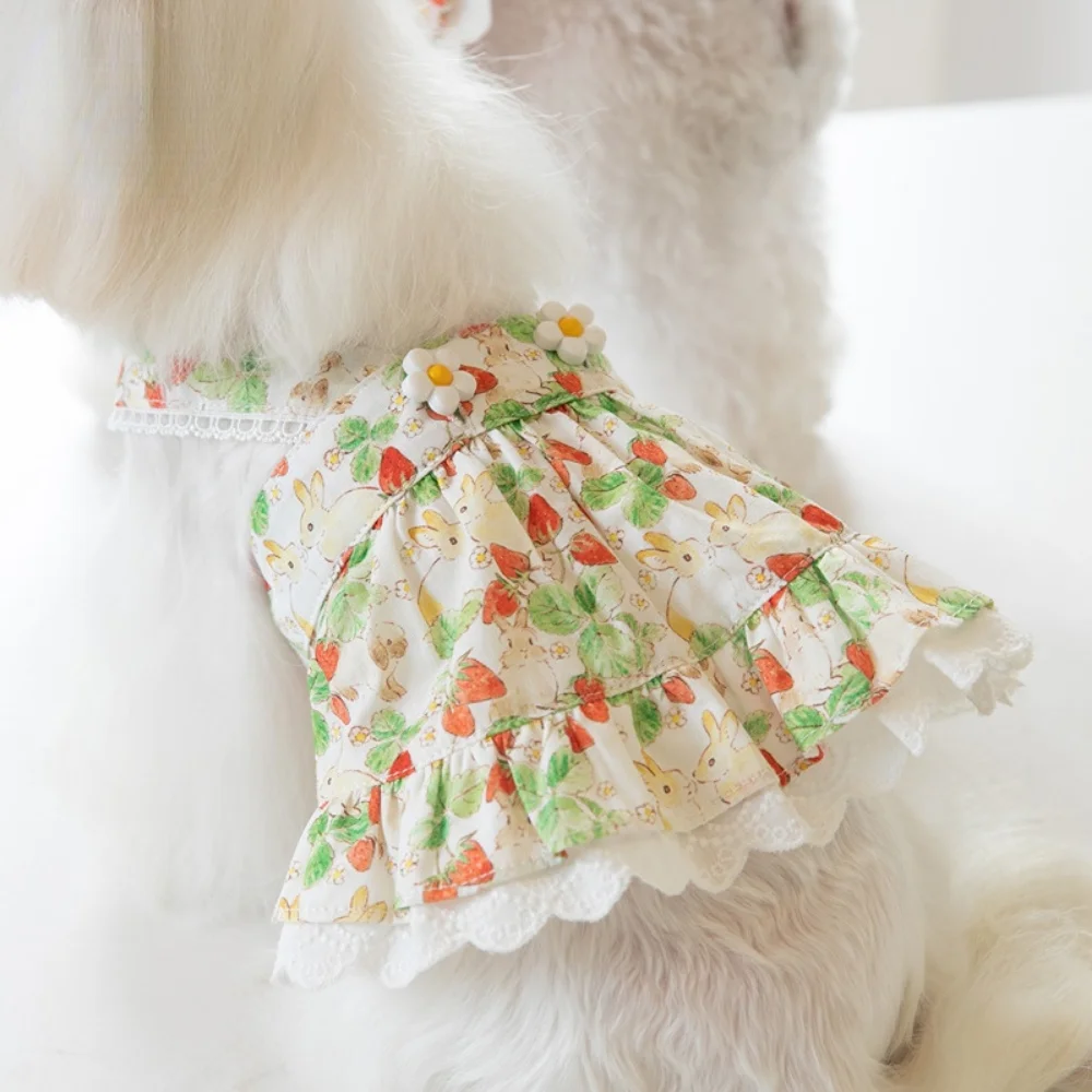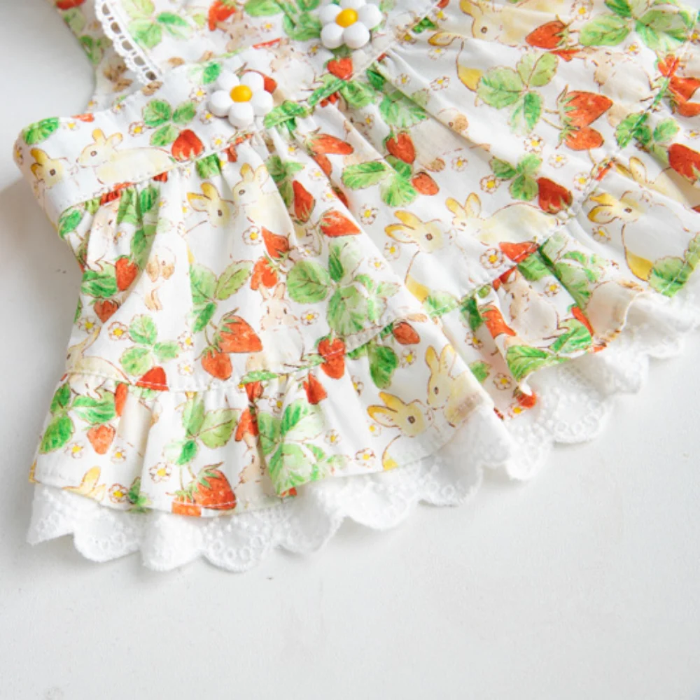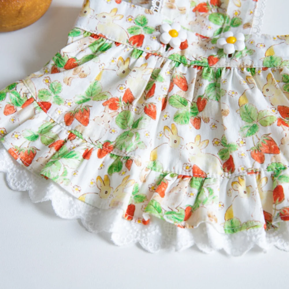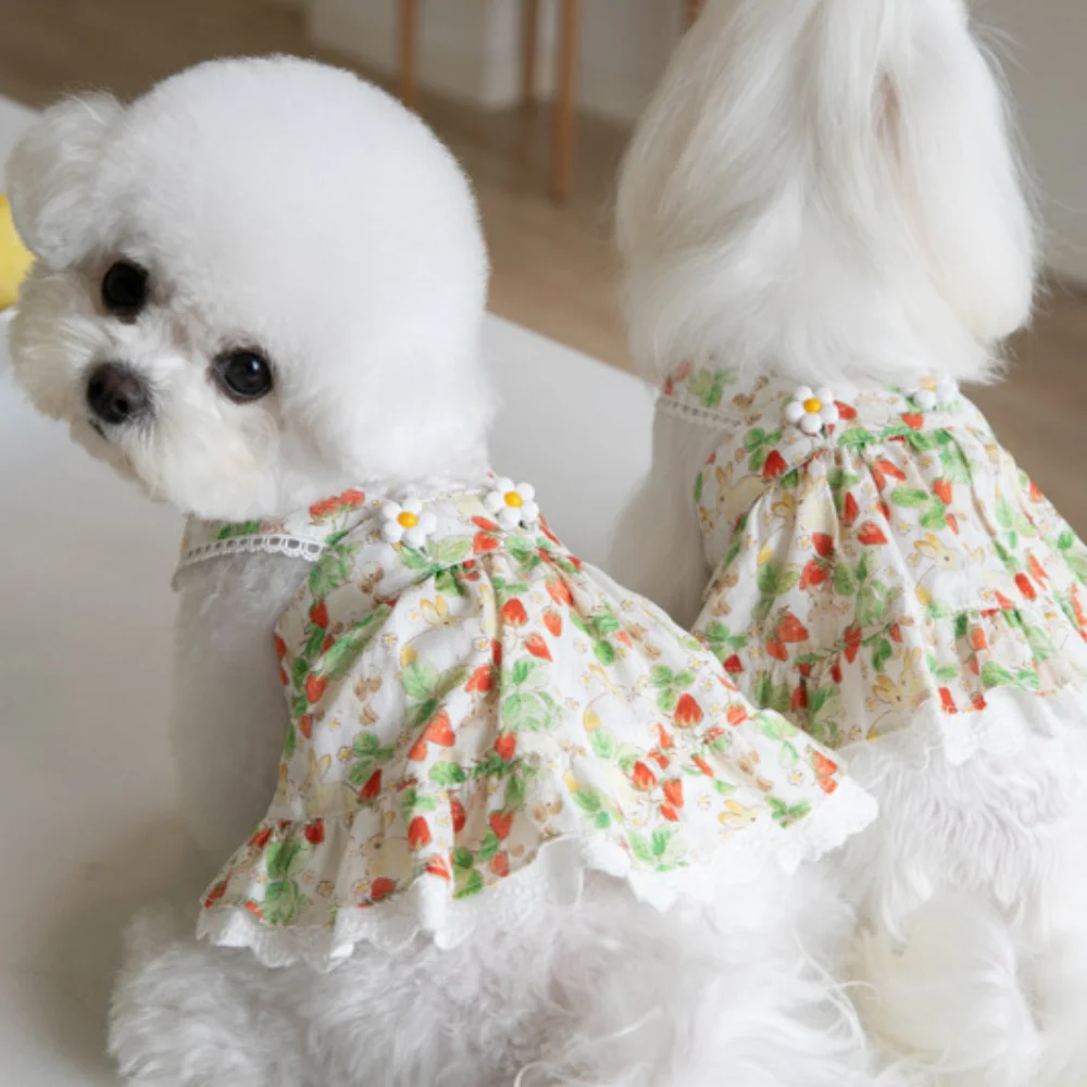 INS-vestido de tirantes con estampado de fresas para mascotas, falda de encaje, vestido de peluche para perros y gatos, ropa para cachorros, ropa para perros