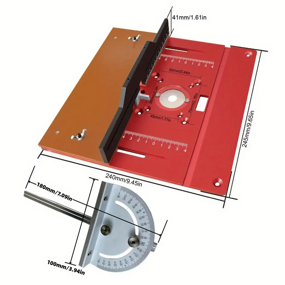 Mejore su carpintería con esta placa de inserción de mesa enrutadora de aluminio de alta calidad.El bloque de ranuras permite ajustes flexibles y el hermoso diseño agrega belleza a su espacio de trabajo.Con un tamaño de 245x240 mm, combina practicidad con precisión para tus proyectos.
