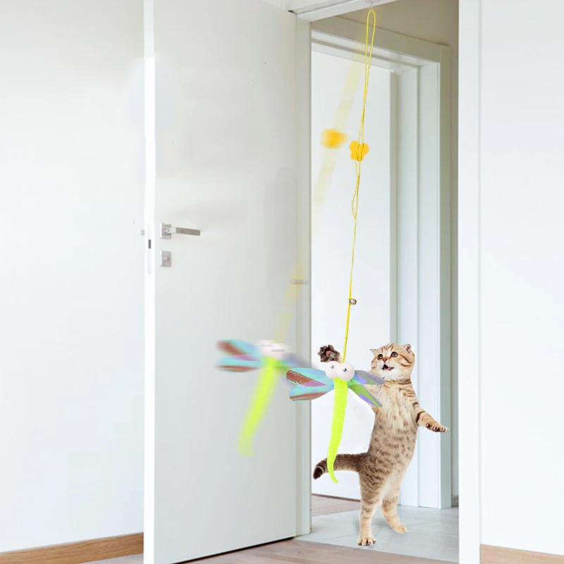 Juguete interactivo para gatos, juguete colgante de simulación para gatos, divertido juguete interactivo de auto-hey para gatitos, juguete con varita teaser, suministros para gatos