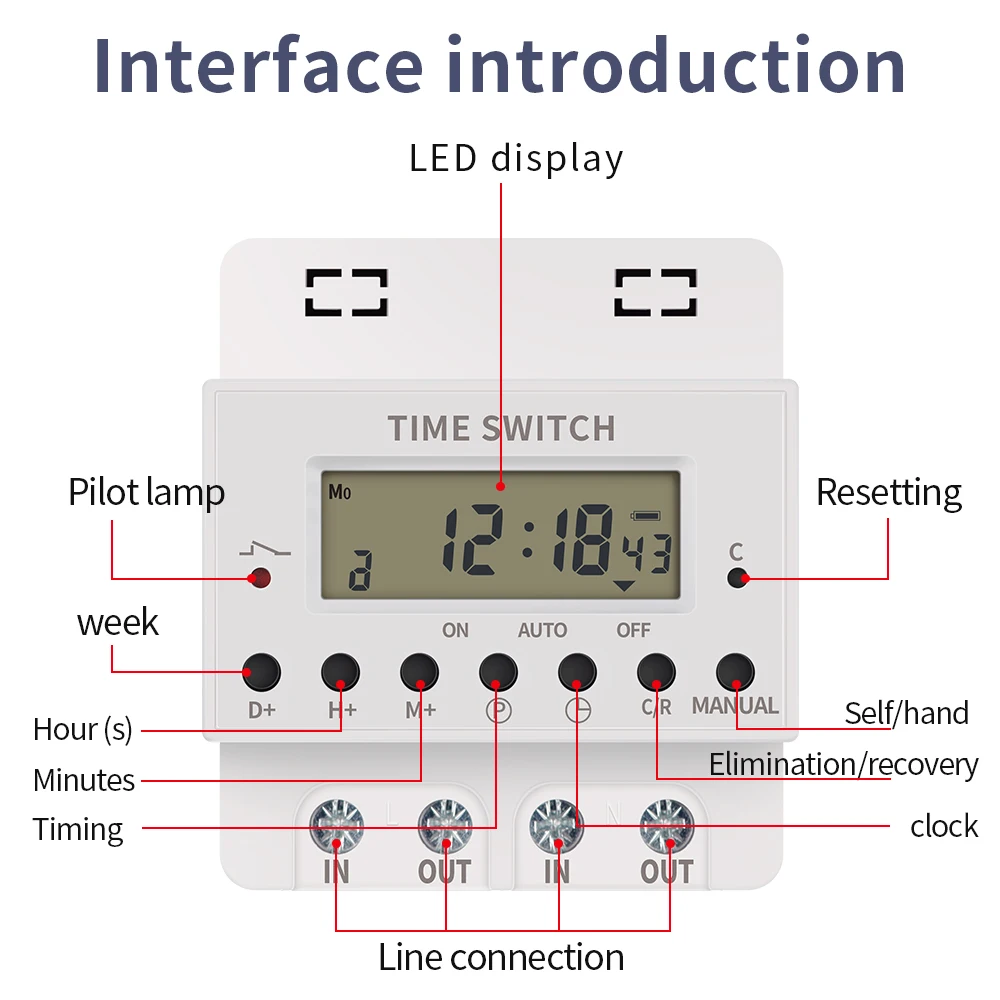 Interruptor de Control de tiempo automático, temporizador Digital de 220V, semanal, controlador de sincronización electrónico programable de 7 días, temporizador 60A 80A 100A