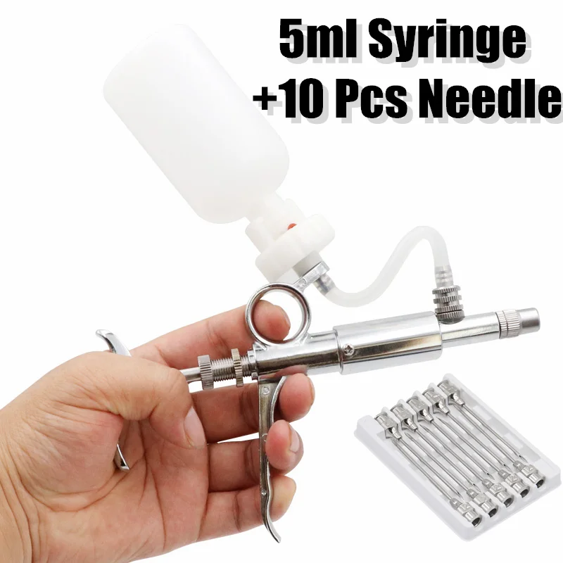Jeringa continua automática de 0,5-5Ml, inyector de jeringa de Metal, equipo veterinario con botellas para vacuna de animales de ganado