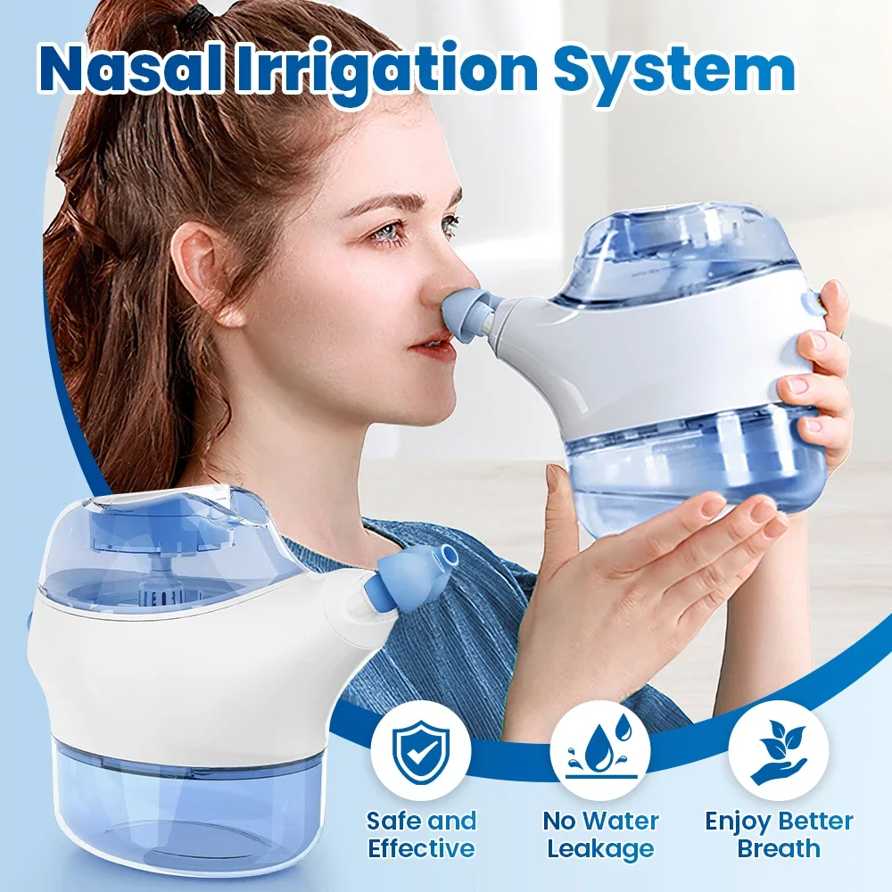 Resultados claros: este irrigador nasal puede aclarar;Disfrute de días libres de congestión y noches de tranquilidad utilizando un limpiador de nariz;este irrigador nasal es un producto confiable y recomendado por el médico en la misión de revolucionar la salud nasal con nuestra potente y eficaz máquina de enjuague nasal;