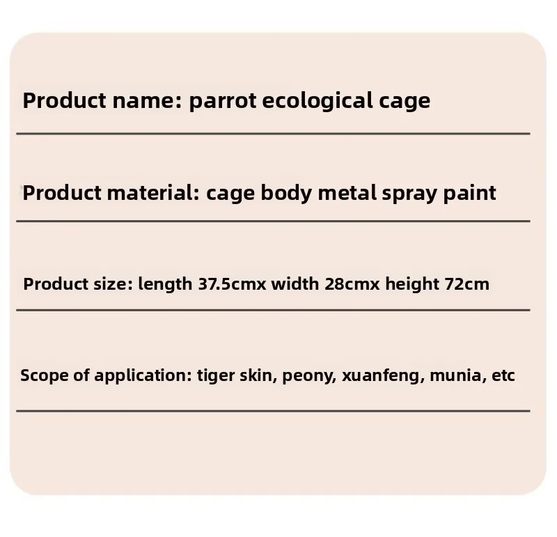 Descripción:Jaula para loros, jaula para pájaros ecológica grande, villa ornamental fácil de limpiar Instrucciones de uso: 1.Compruebe si el producto está en buenas condiciones antes de usarlo. 2.Lávelo y manténgalo correctamente después de su uso. 3.Debido a los diferentes lotes de producción, los detalles del producto pueden variar. 4.Si le importa la diferencia de precio, compre con precaución.
