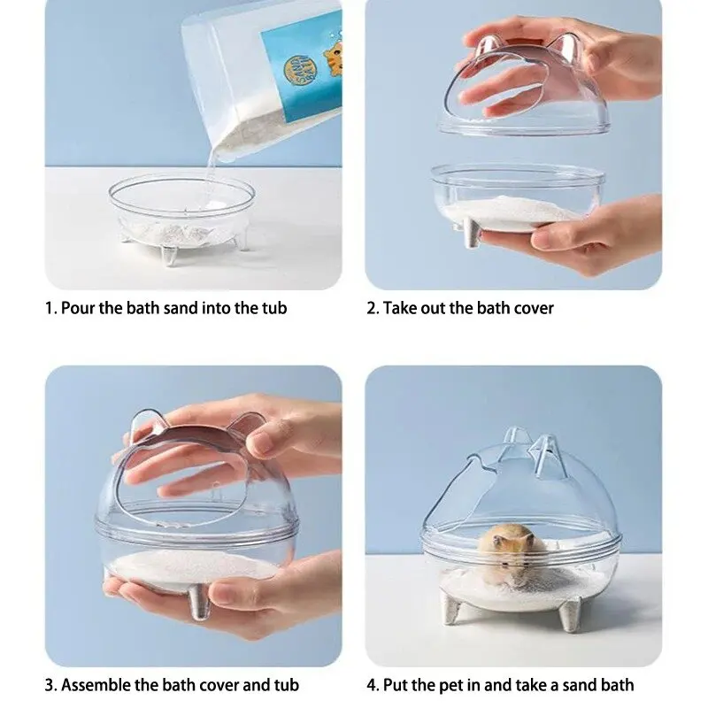 1.Diseño transparente: nuestro baño para mascotas con osito de peluche dorado para hámster adopta un diseño transparente, donde puede observar claramente el comportamiento y el estado de su mascota, que es a la vez lindo y divertido.
