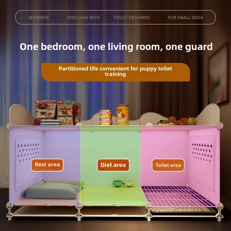 Jaula para cachorros, perro pequeño con red de hierro, área de separación de inodoro, perrera, productos para mascotas, suministros, accesorios, esteras para jaula de aislamiento interior