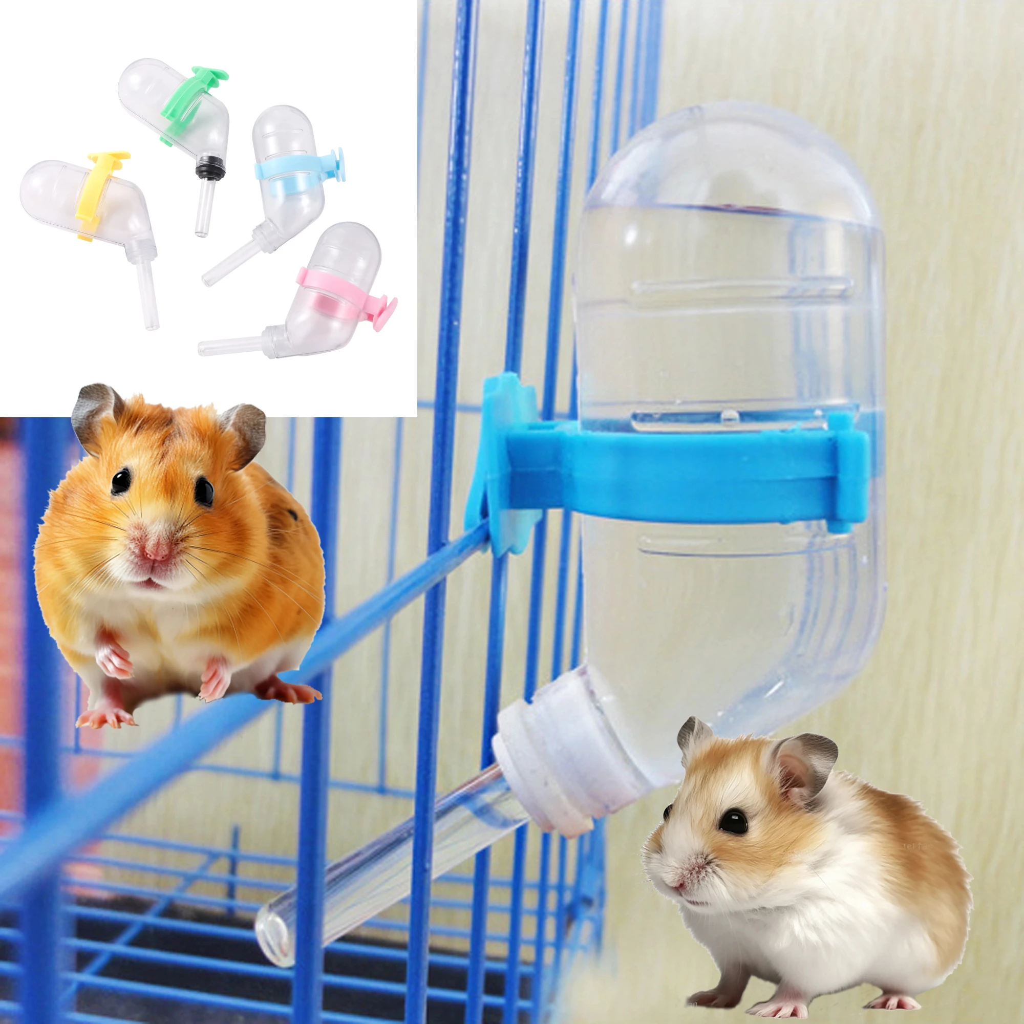 Jaula colgante para hámster de 60ml, juego de bebedero al vacío, botella de agua de plástico con soporte, adecuada para bebedero pequeño para mascotas, oso dorado, conejo