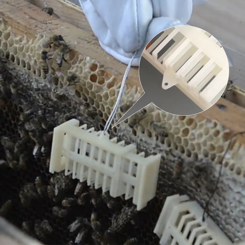 Se utiliza para atrapar la abeja reina en el peine y mantenerla segura durante la inspección y el trabajo en su colmena, la larva no más larga necesita ser transferida a la jaula.