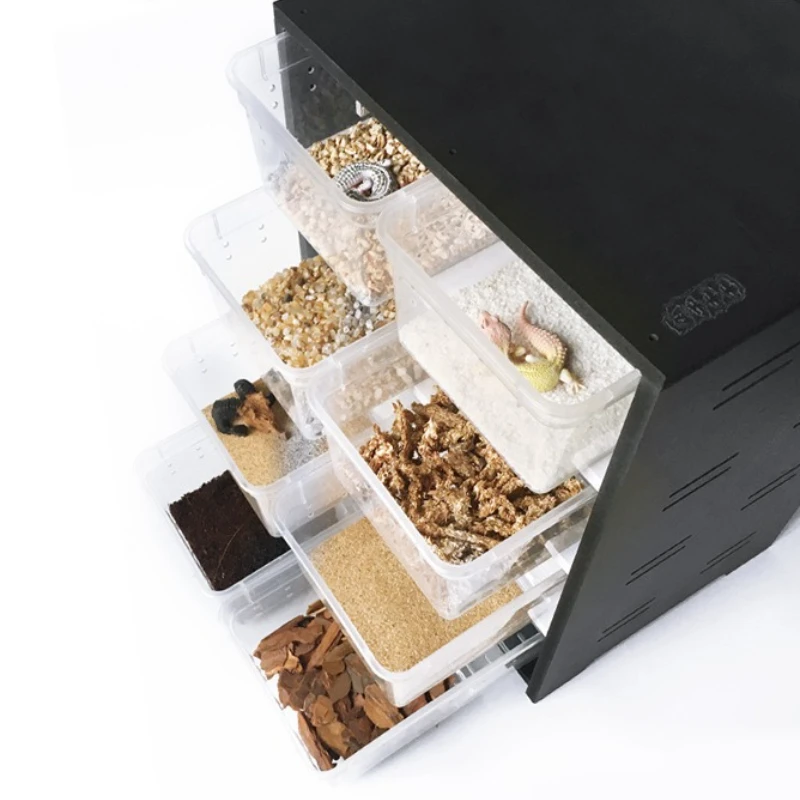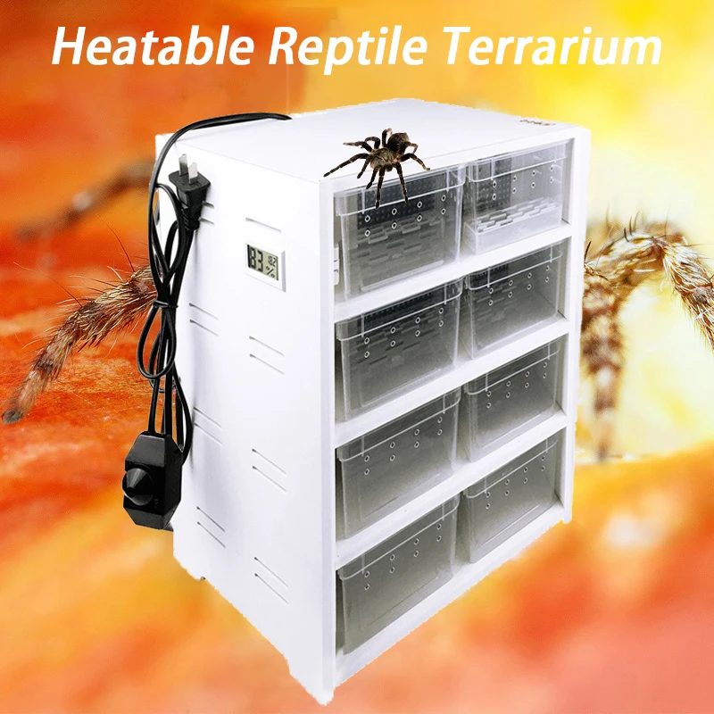 Jaula de cría de reptiles y lagartos calentable para invierno, Control de temperatura ajustable, terrarios de PVC, gabinete de rana con cuernos ocultos de araña