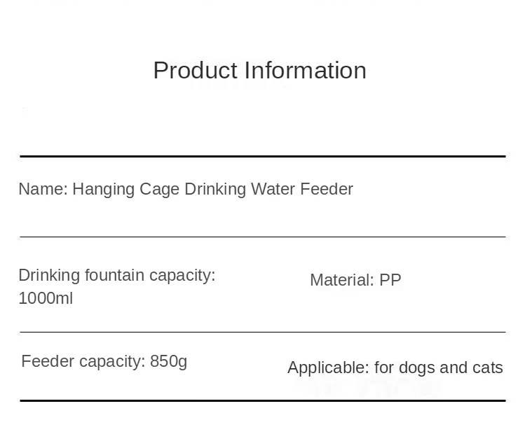 Cat Cage Hanging Automatic Drinking Fountain Feeder Large Capacity Kitten Puppy Rabbit Feeding Bowl Water Drinker Pets Supplies