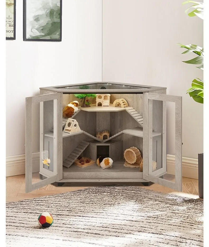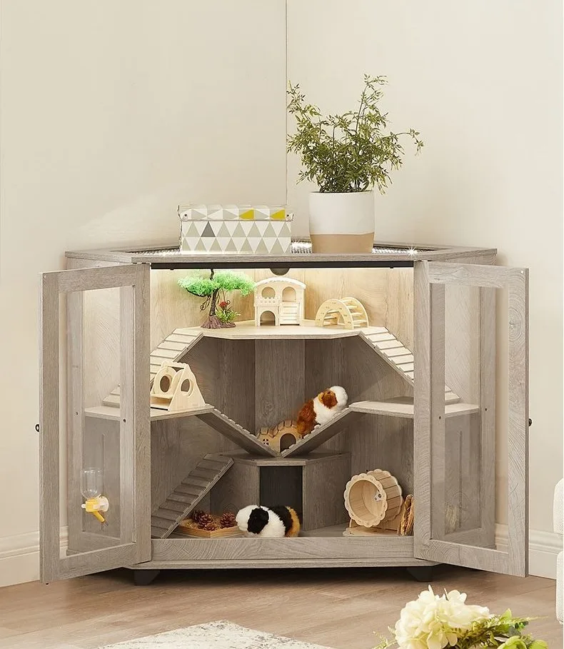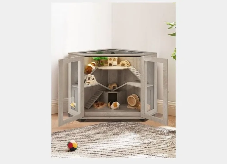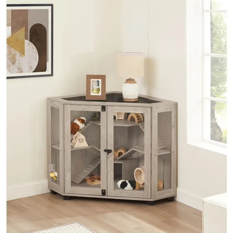 Jaula grande para hámster, jaulas esquineras para conejos y hámster, casa transpirable para hámsteres, conejos y erizos con cerradura, casas para animales pequeños de interior